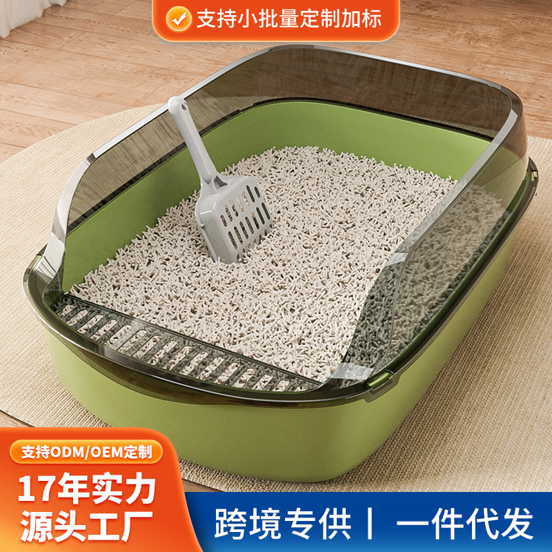 재고 도매 높은 울타리 반 닫힌 고양이 쓰레기 상자 두꺼운 고양이 화장실 고양이 쓰레기 삽 애완 동물 용품