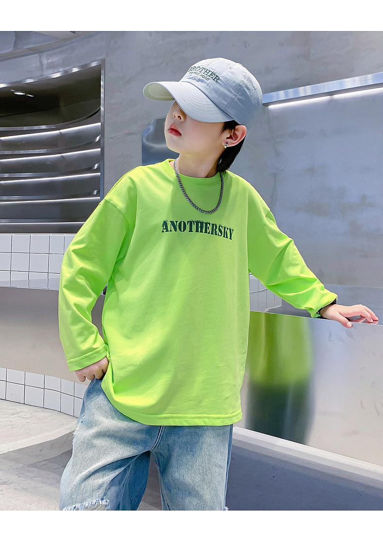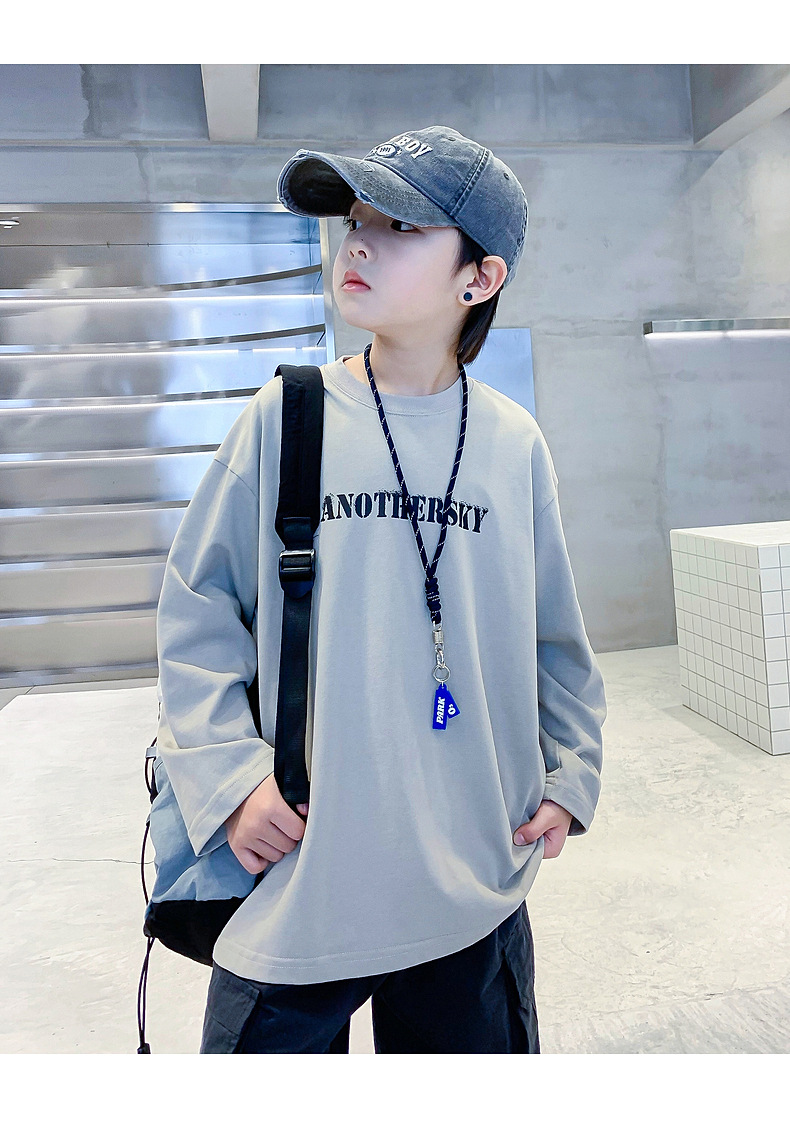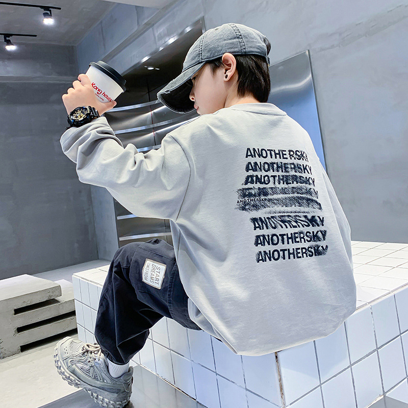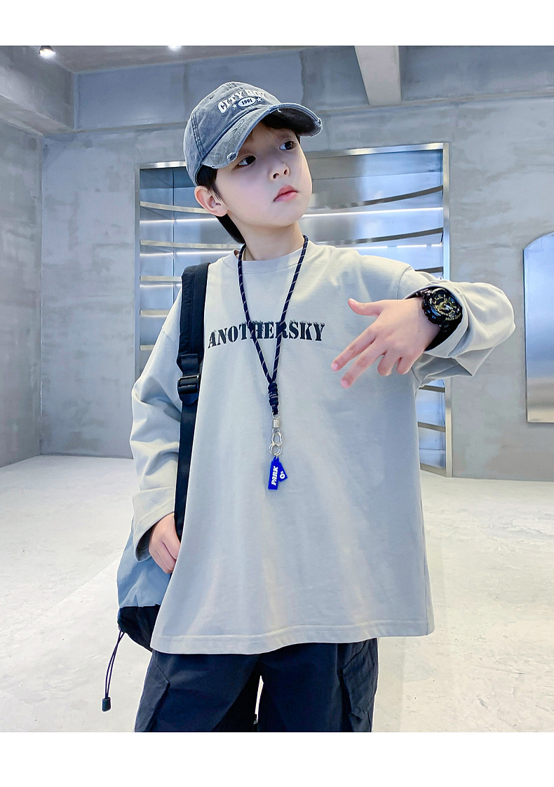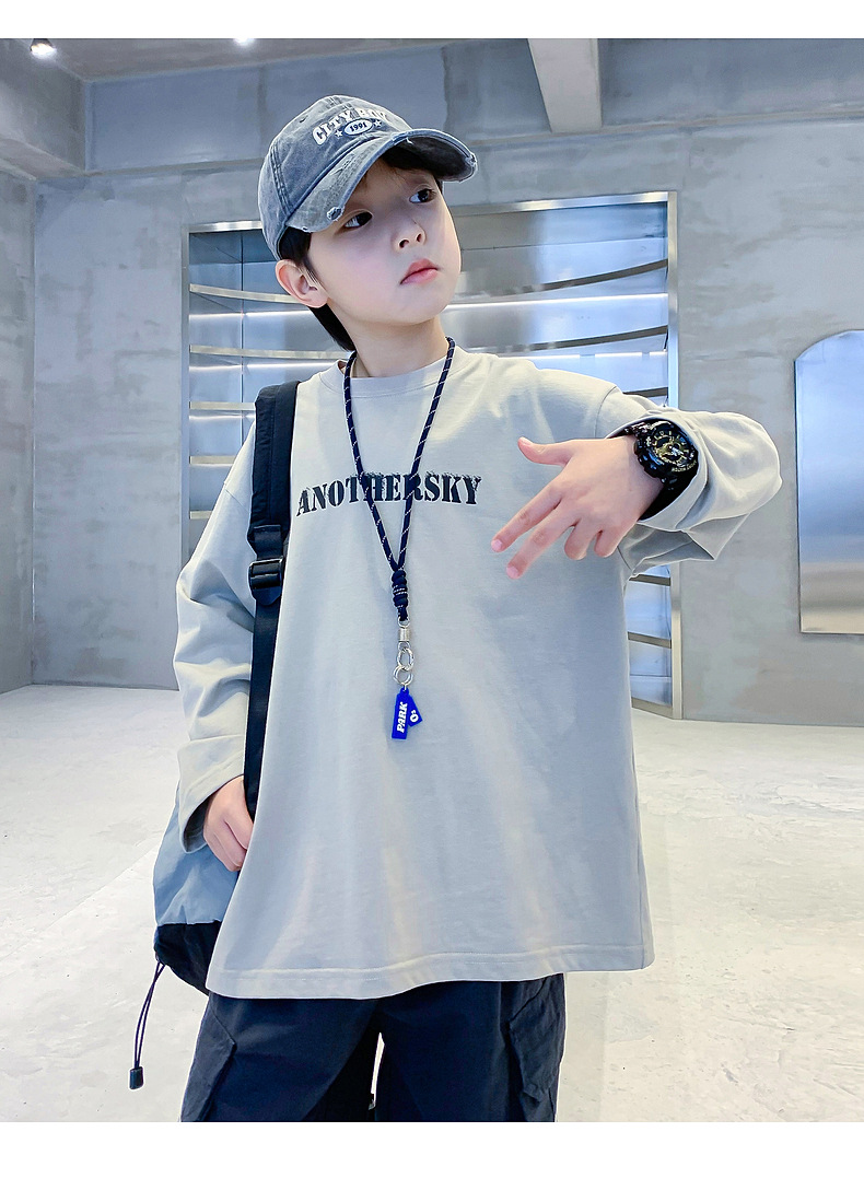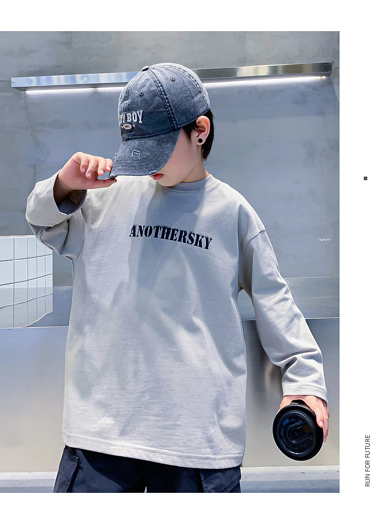 트렌디 브랜드 아동복 소년 순면 긴팔 티셔츠 가을 2025 새로운 한국 스타일 아동 가을 의류 큰 어린이 바닥 탑스토어 가기
