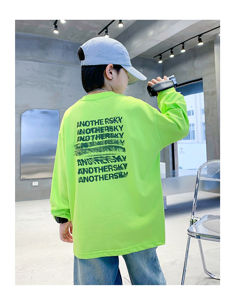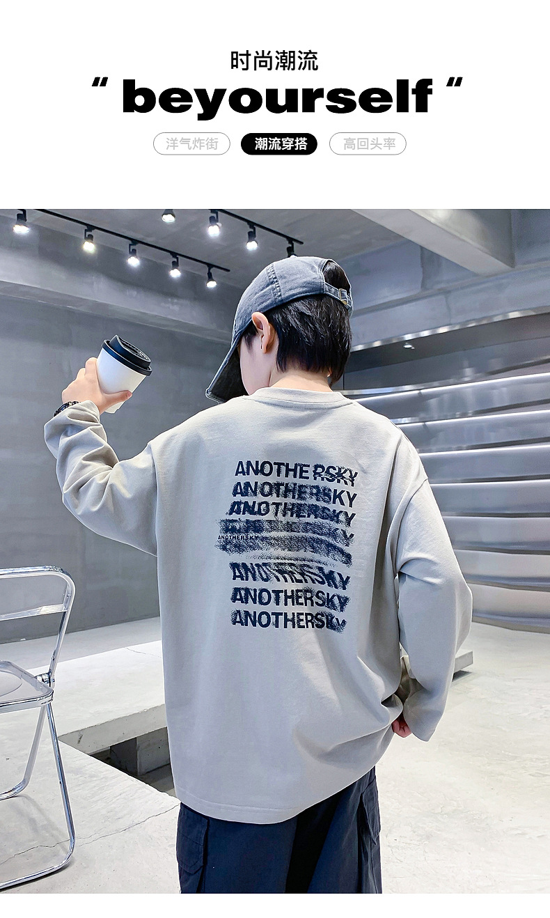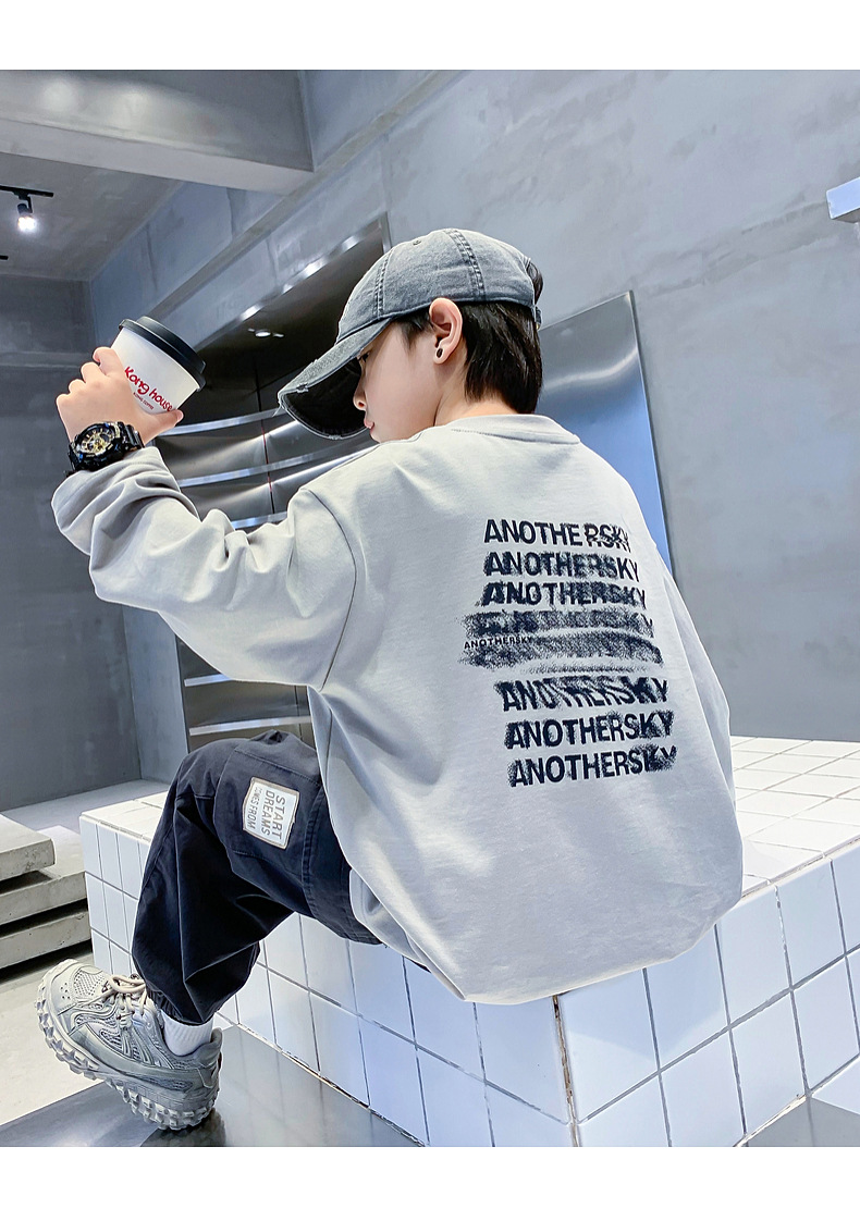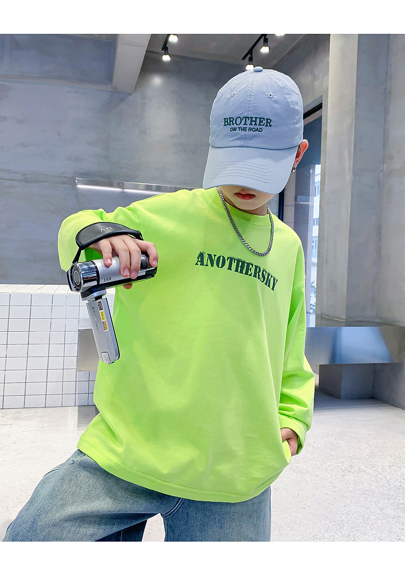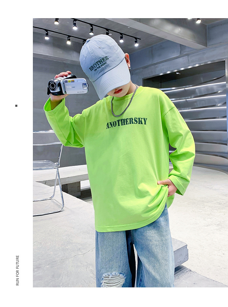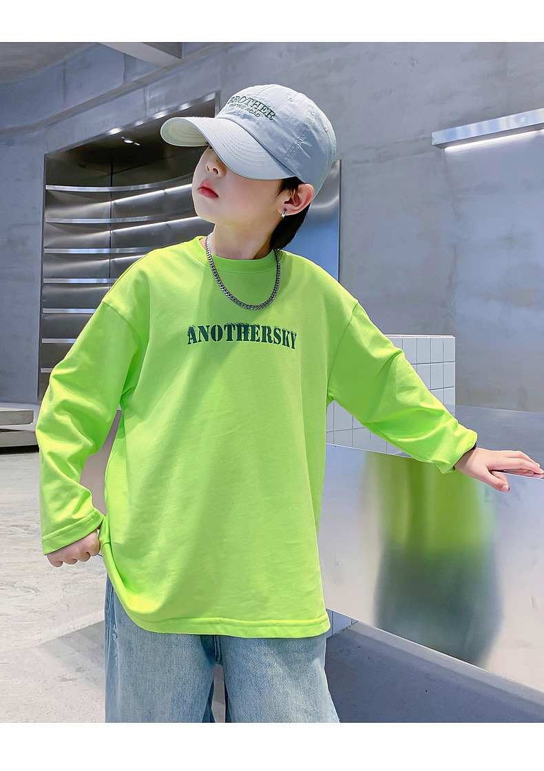 트렌디 브랜드 아동복 소년 순면 긴팔 티셔츠 가을 2025 새로운 한국 스타일 아동 가을 의류 큰 어린이 바닥 탑스토어 가기