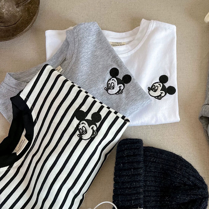 순면 남녀 아동용 긴팔 티셔츠 2025 스트라이프 만화 미키 만능 아이템 봄 가을용스토어 가기