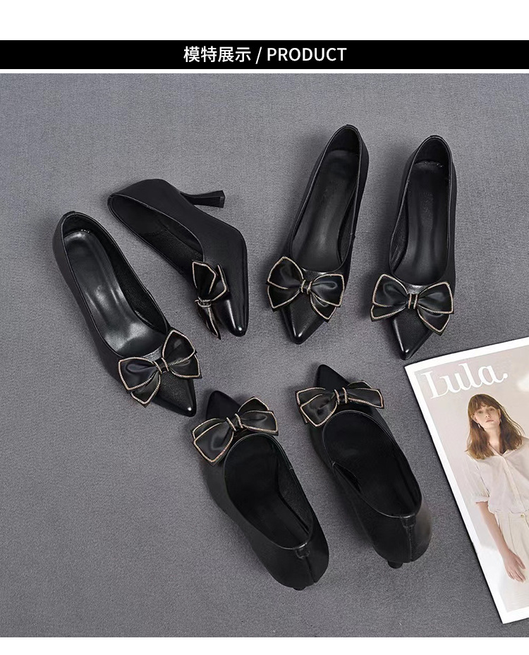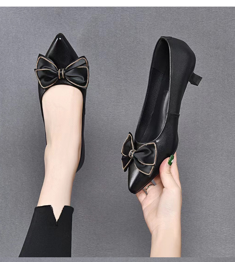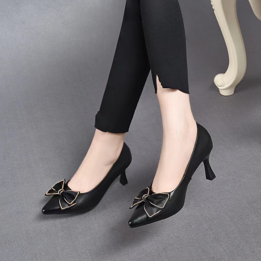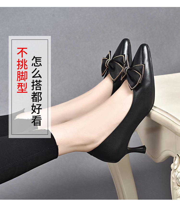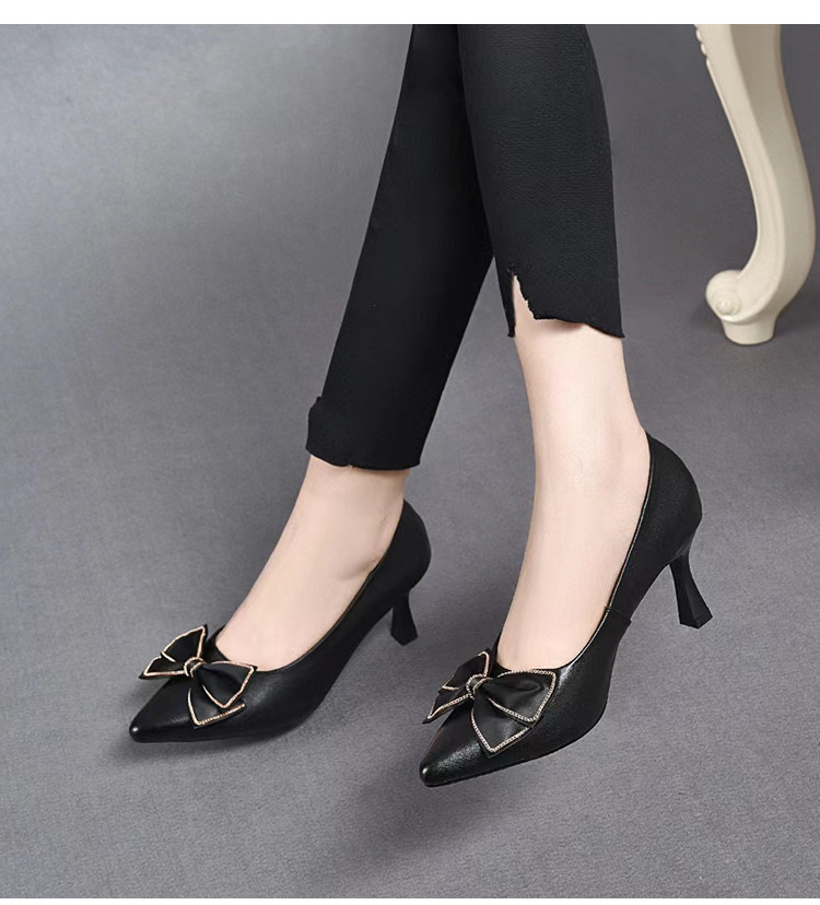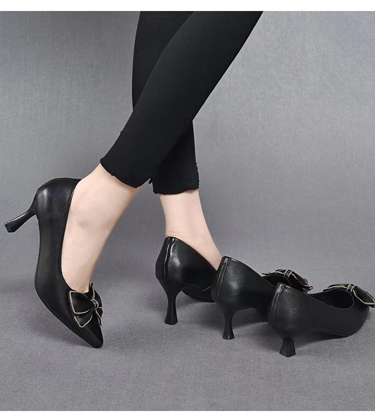 활 하이힐 여성용 통근 가죽 뾰족한 얕은 입 신발 여성용 스틸레토 힐 슬립 온 신발 블랙 워크 슈즈