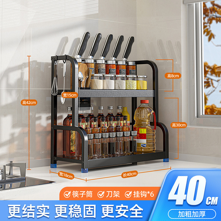 주방 랙 바닥에 서있는 조미료 랙 용품 칼 랙 2 층 조리대 랙 오일 소금 소스 식초 보관 보관 랙스토어 가기
