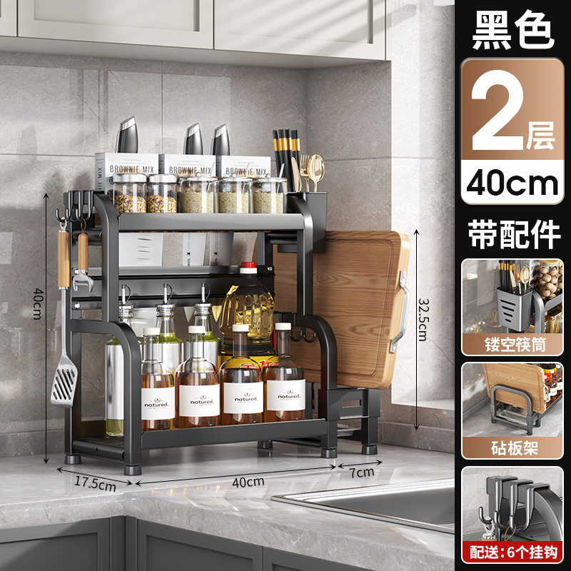 • 새로운 블랙 2단 조미료 선반 40cm 기본형