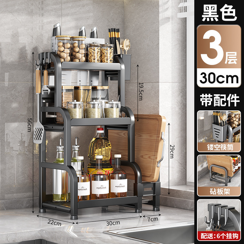 • 새 상품 - 블랙 3단 조미료 선반 30cm 풀세트