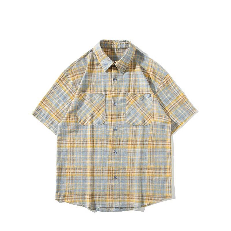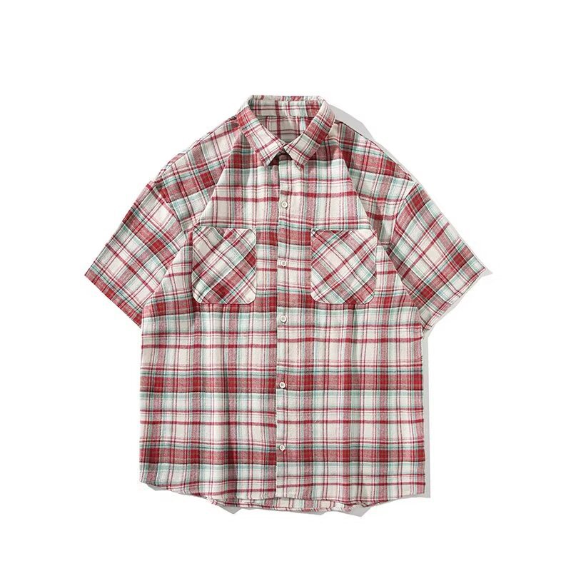 클린 핏 격자 무늬 아메리칸 스타일 레트로 셔츠 남성 아우터 착용 봄과 가을 격자 무늬 셔츠 내부 쌓인 청소년 셔츠스토어 가기