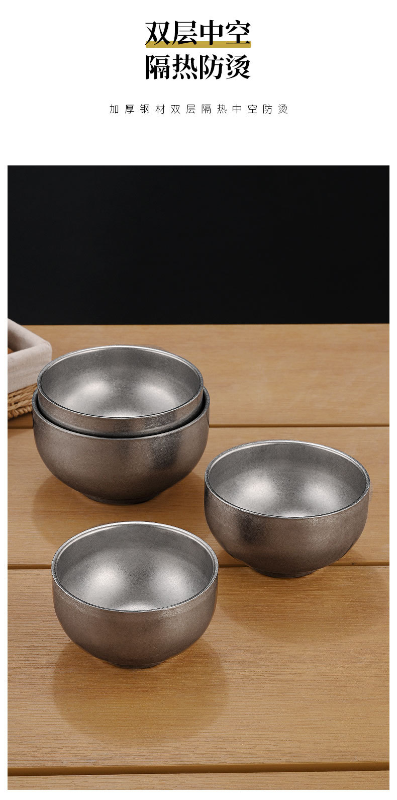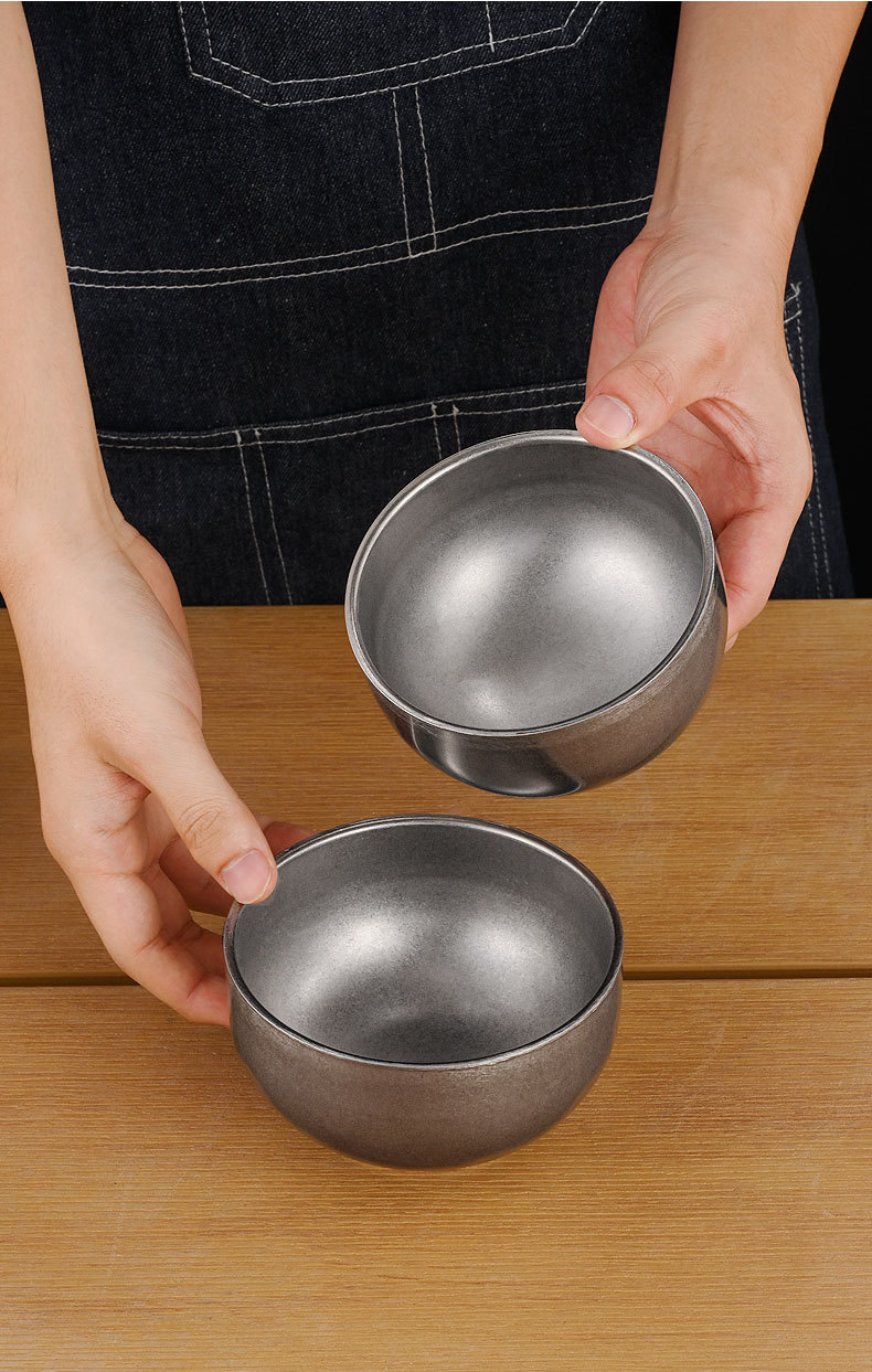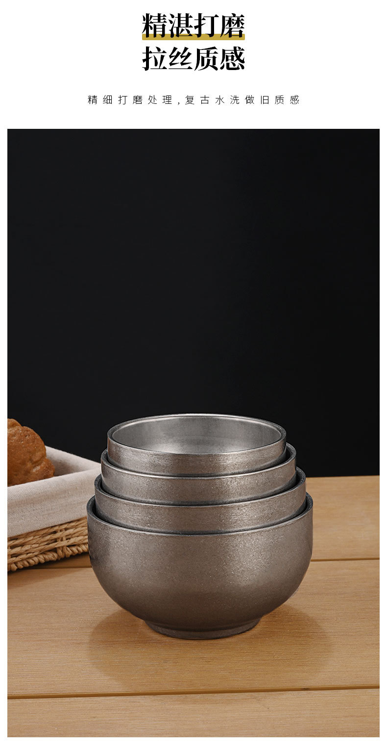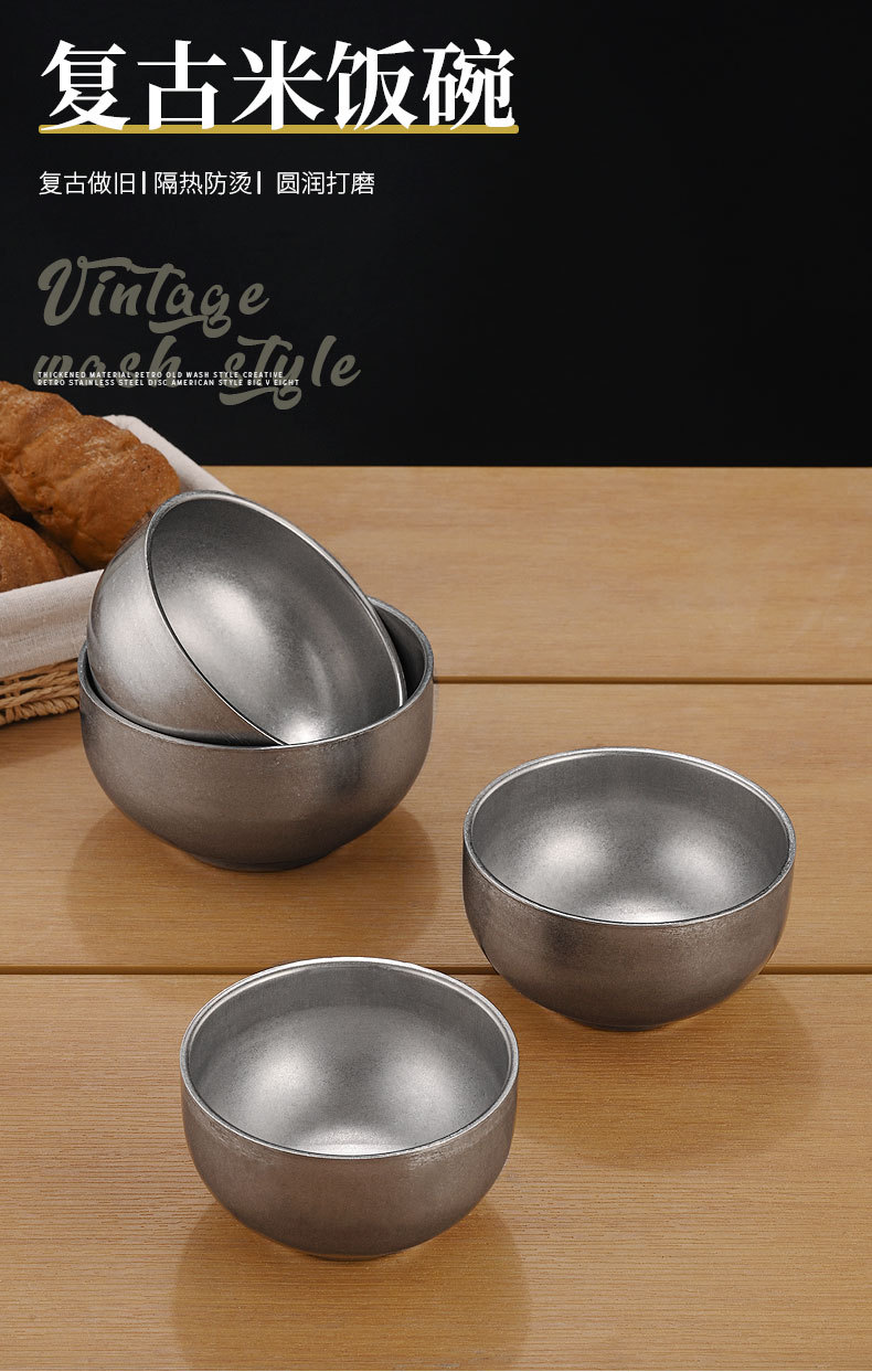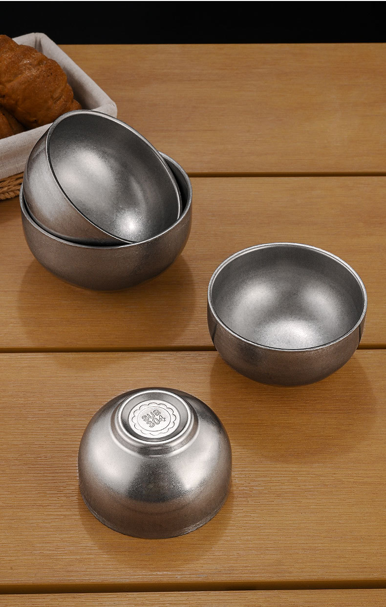 빈티지 304 스테인레스 스틸 쌀 그릇 이중 층 단열 수프 그릇 어린이 성인 식사 그릇 오래된 그릇 맞춤 로고스토어 가기