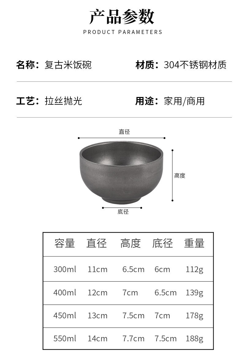 빈티지 304 스테인레스 스틸 쌀 그릇 이중 층 단열 수프 그릇 어린이 성인 식사 그릇 오래된 그릇 맞춤 로고