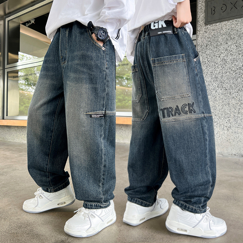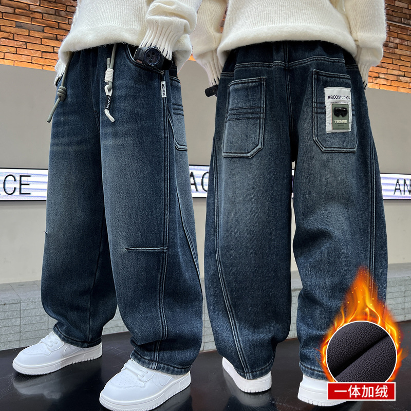 소년 바지 아동복 2025 새로운 느슨한 중대형 아동 벨벳 청바지 가을, 겨울 소년 봄, 가을 바지
