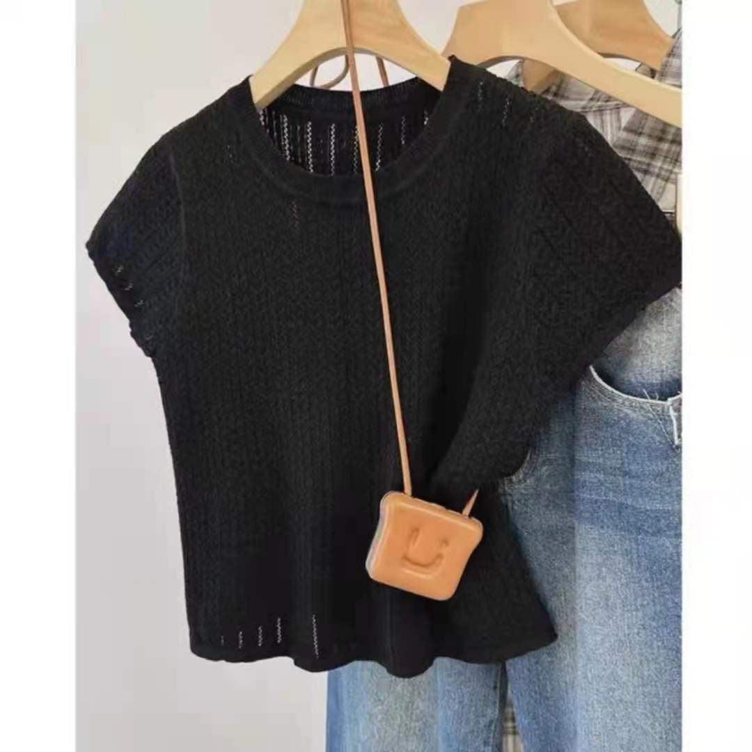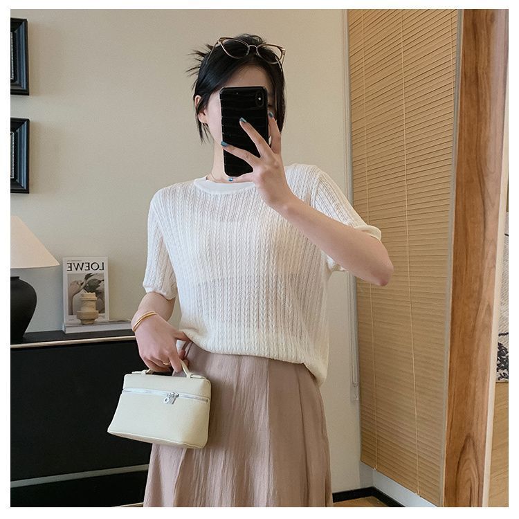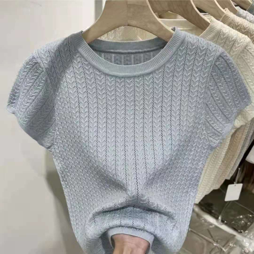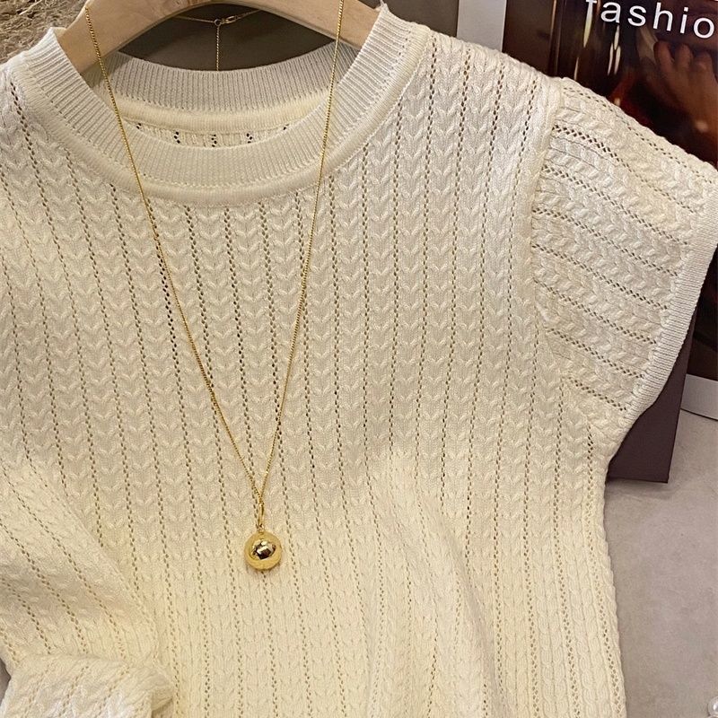 소금 달콤한 반팔 스웨터 여자 여름 하이 엔드 슈퍼 잘 생긴 기질 시대 감소 라운드 넥 트위스트 쇼트 탑스토어 가기