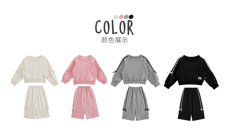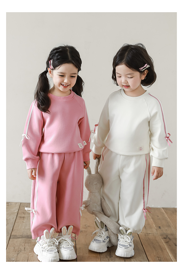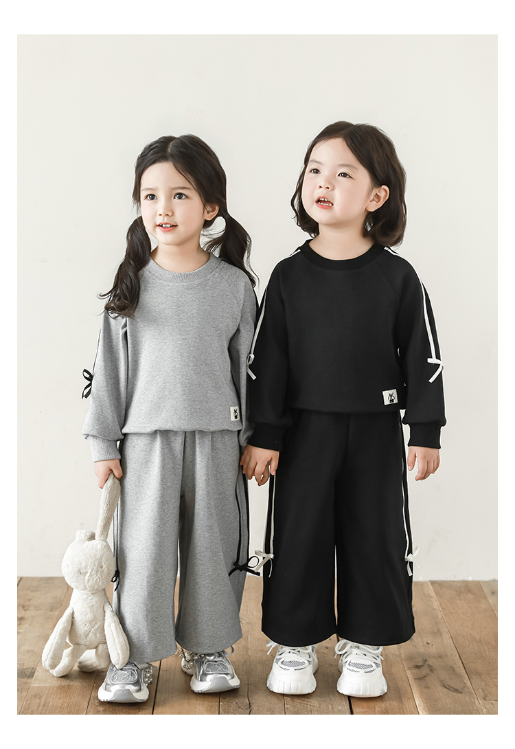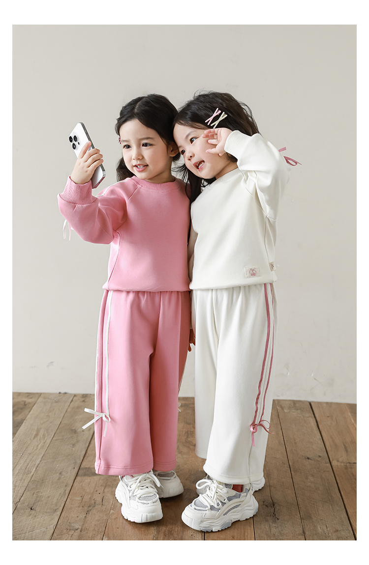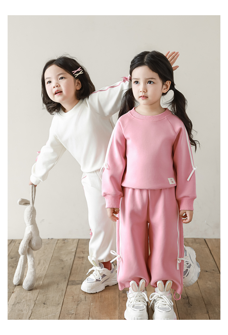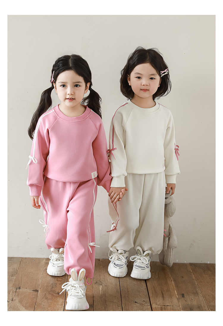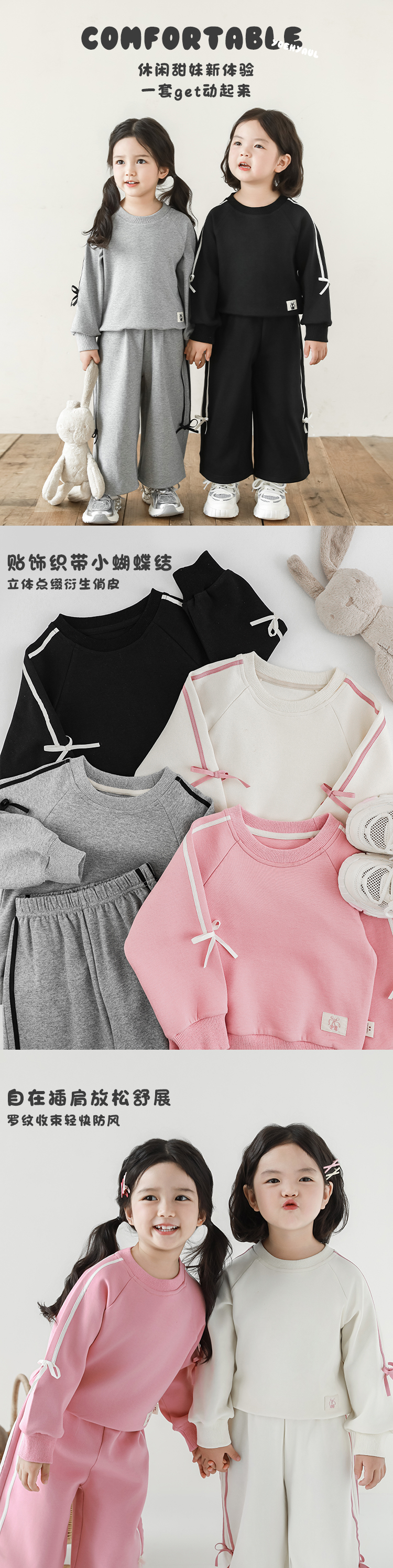 Wulibu Yi Girls 2025 봄, 가을 신상 캐주얼 심플 투피스 아동 스포츠 스웨트셔츠와 바지 세트스토어 가기