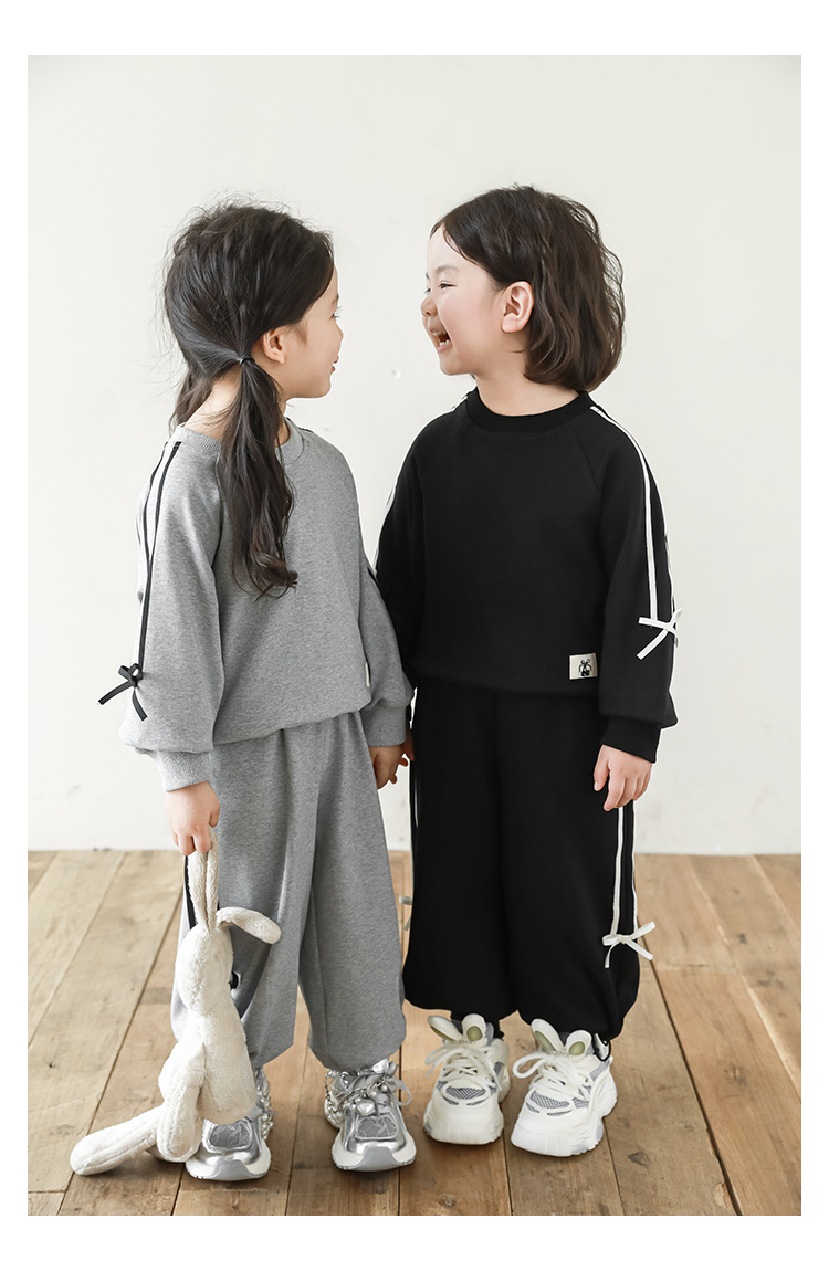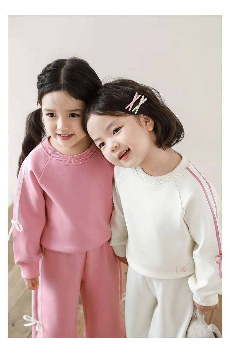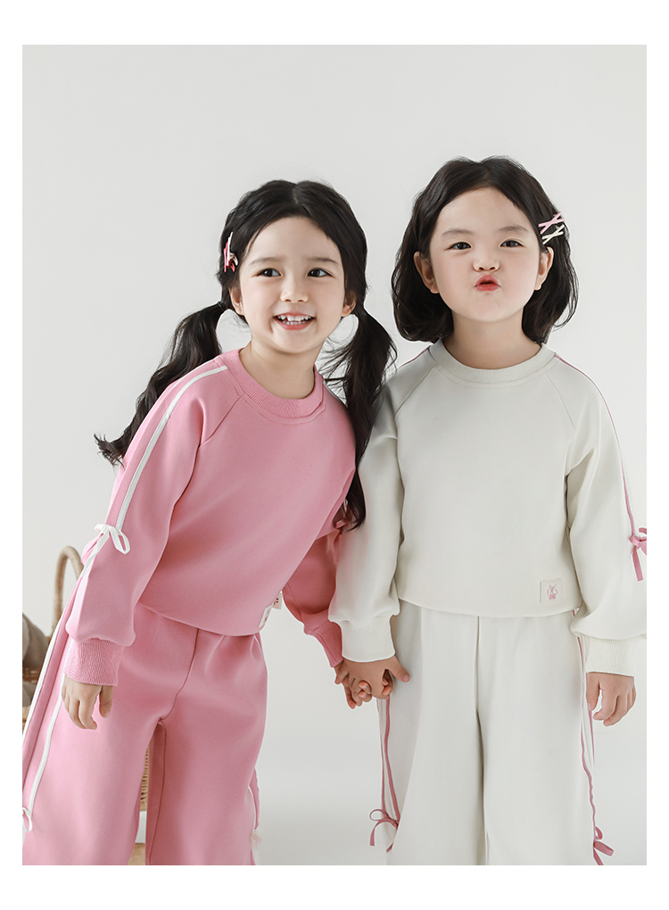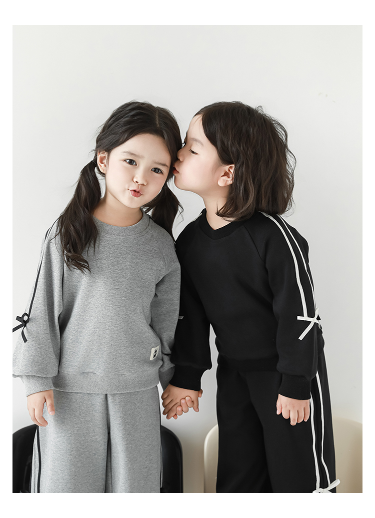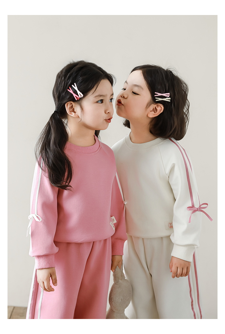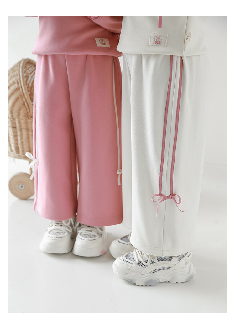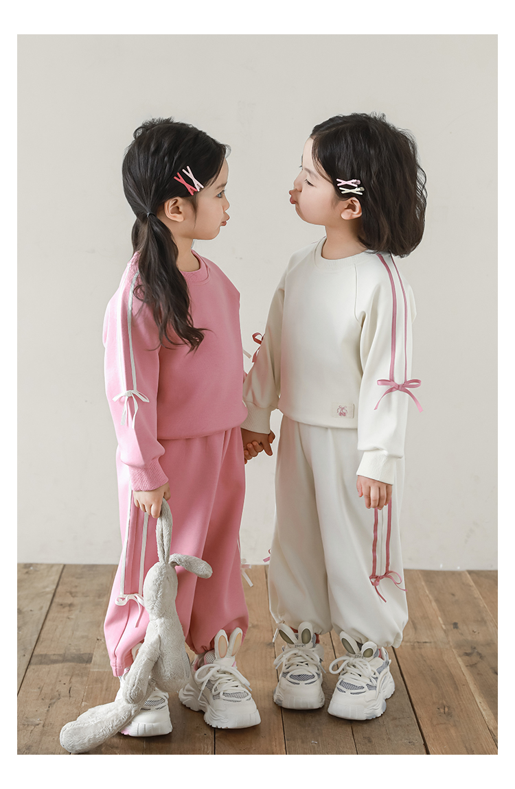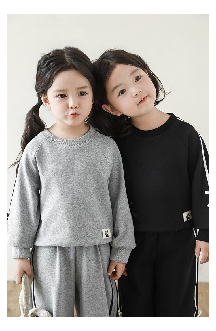 Wulibu Yi Girls 2025 봄, 가을 신상 캐주얼 심플 투피스 아동 스포츠 스웨트셔츠와 바지 세트스토어 가기