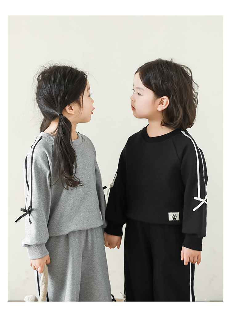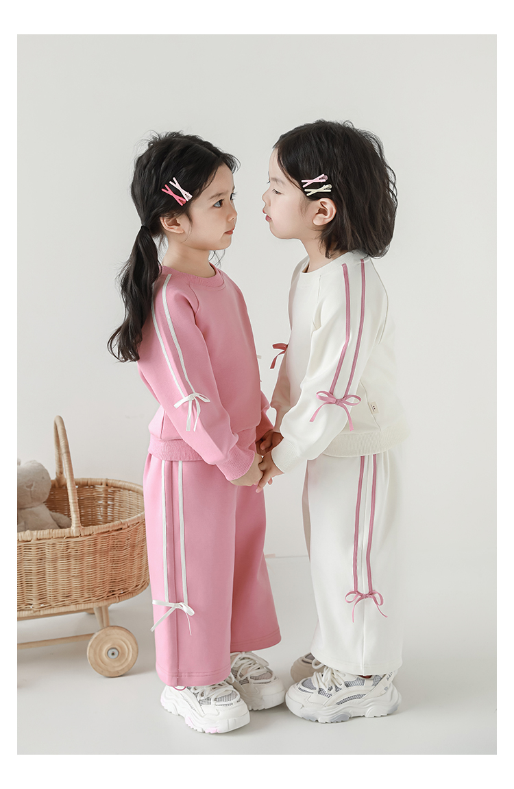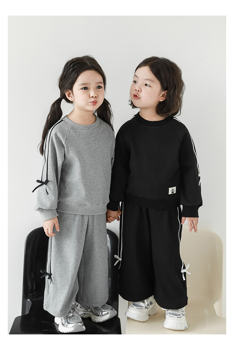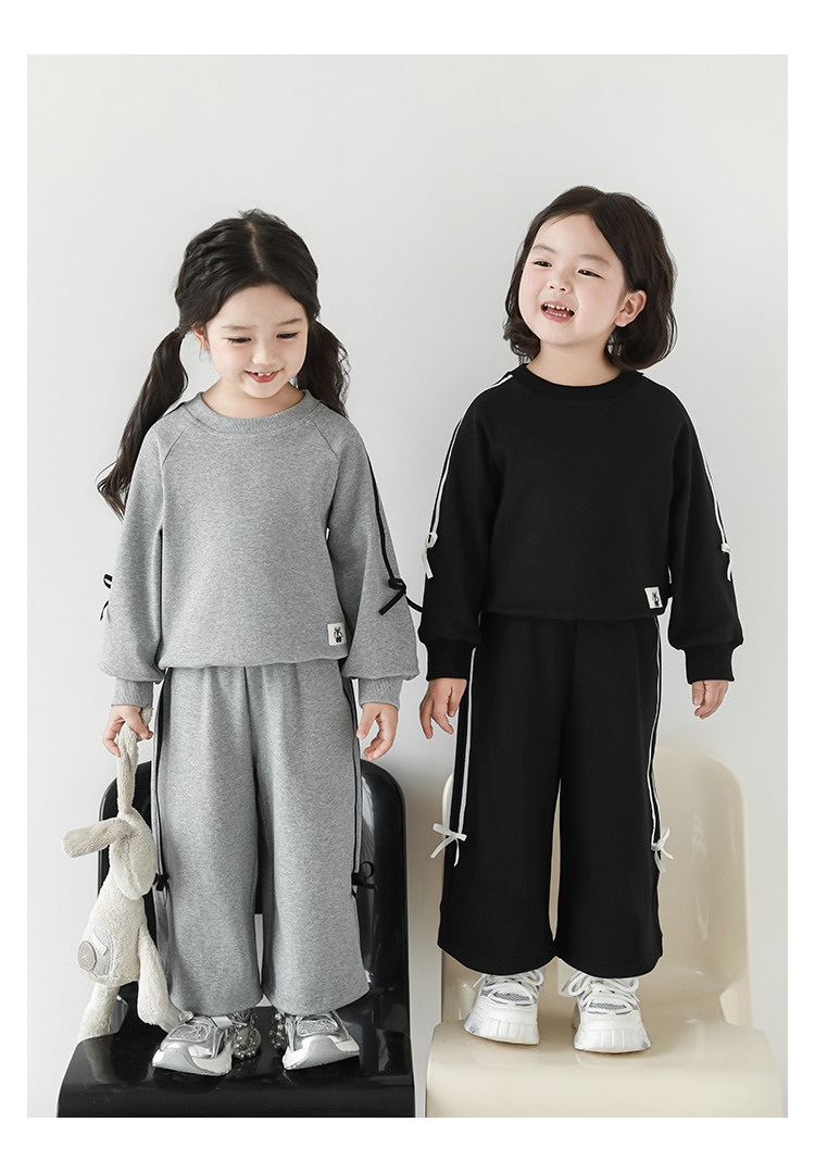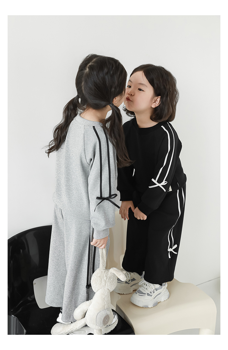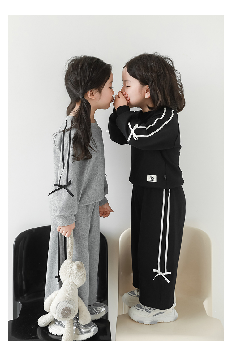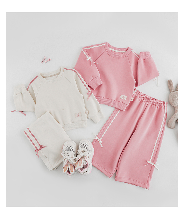 Wulibu Yi Girls 2025 봄, 가을 신상 캐주얼 심플 투피스 아동 스포츠 스웨트셔츠와 바지 세트스토어 가기