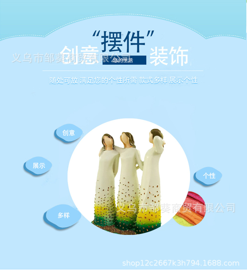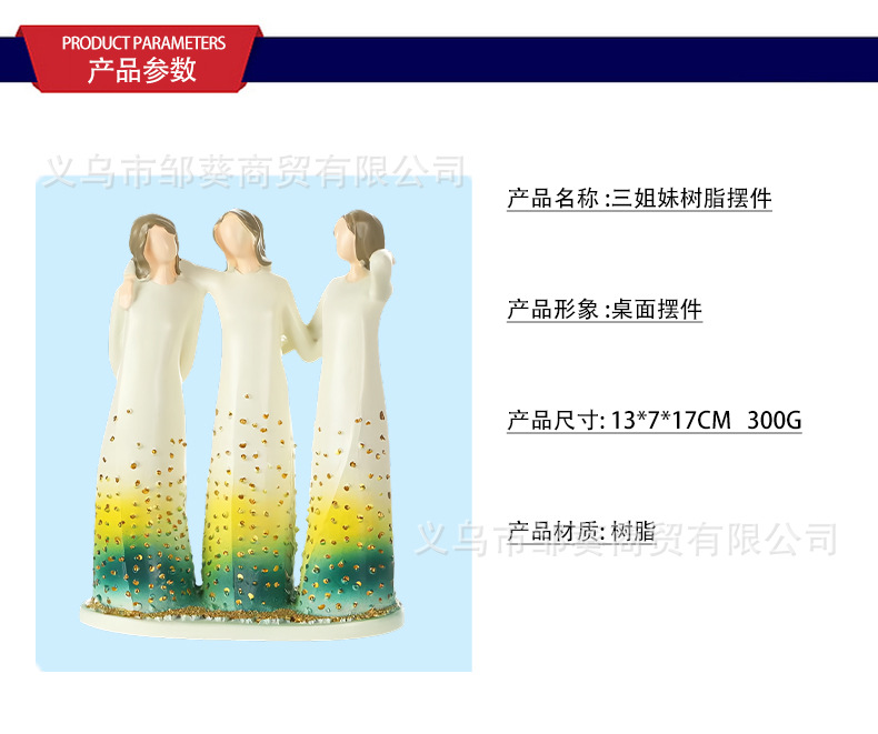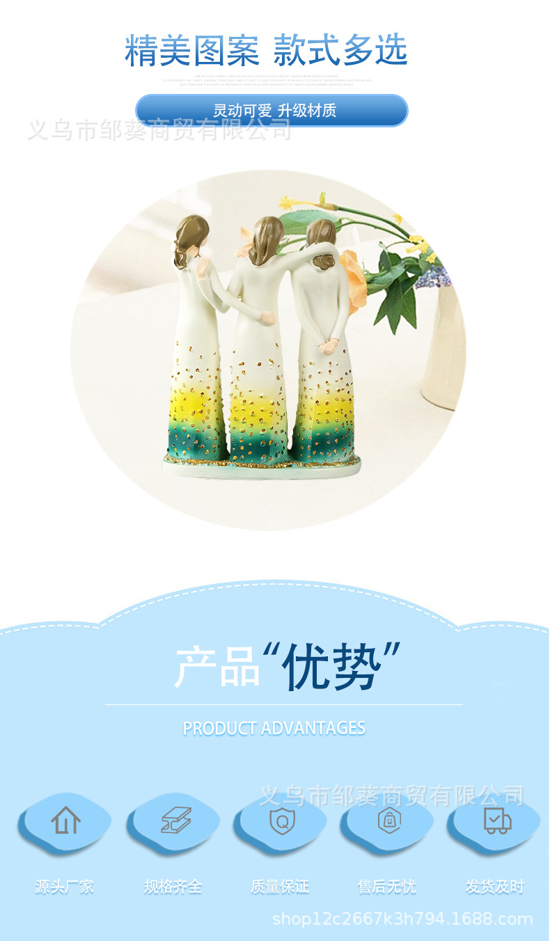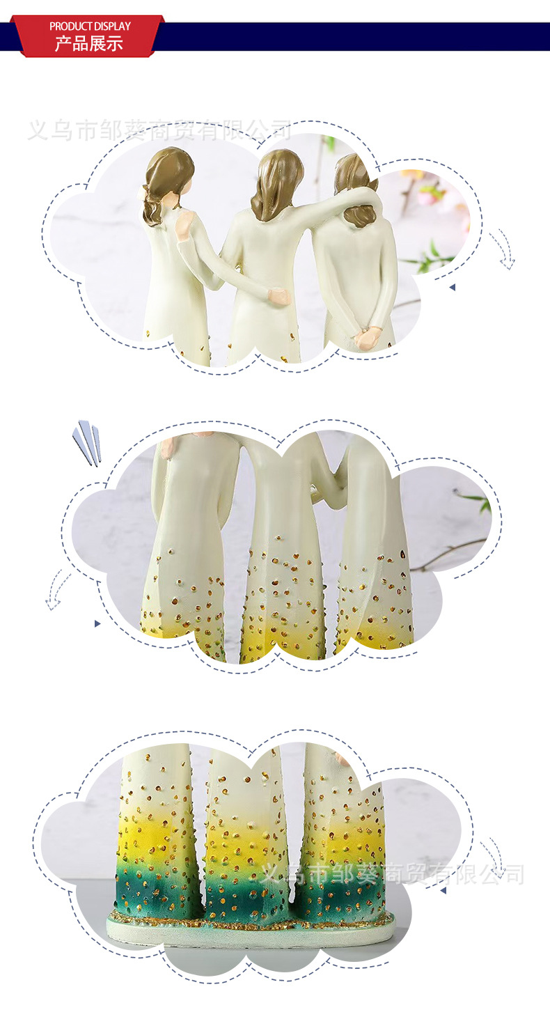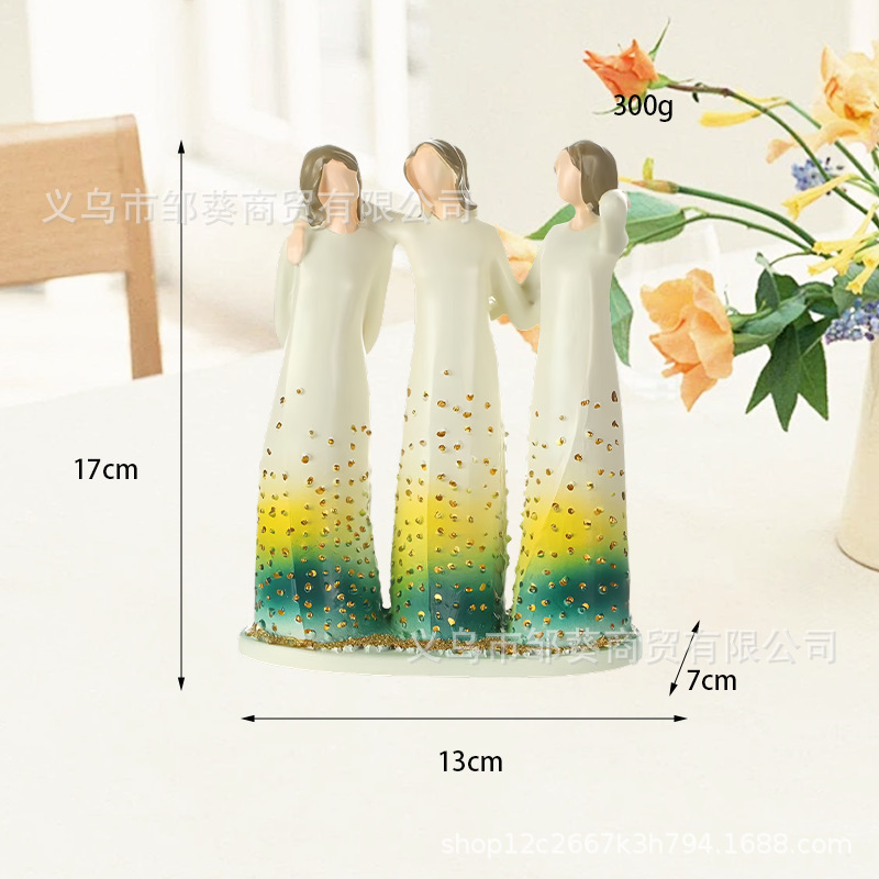 새로운 인물 동상 장식을위한 국경 특별 휴일 기념 선물 세 여성 수지 공예 장식품스토어 가기