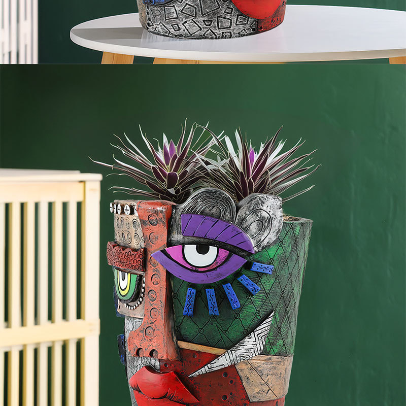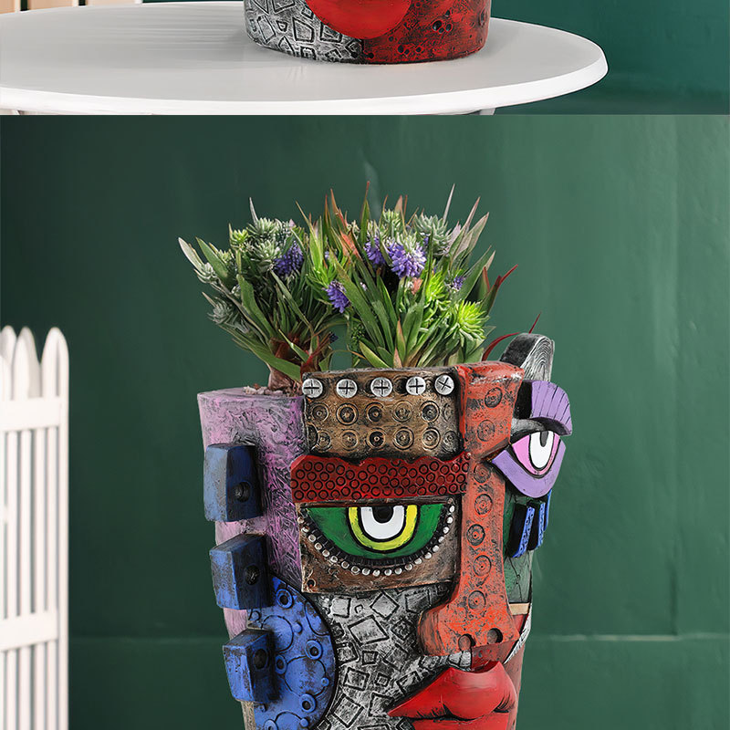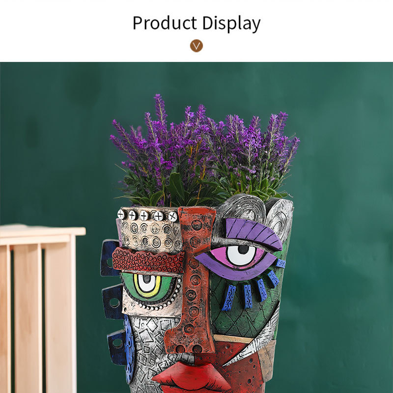 국경 간 새로운 창조적 인 마야 추상 얼굴 꽃 냄비 수지 장식 개인화 된 아트 홈 정원 조경 장식