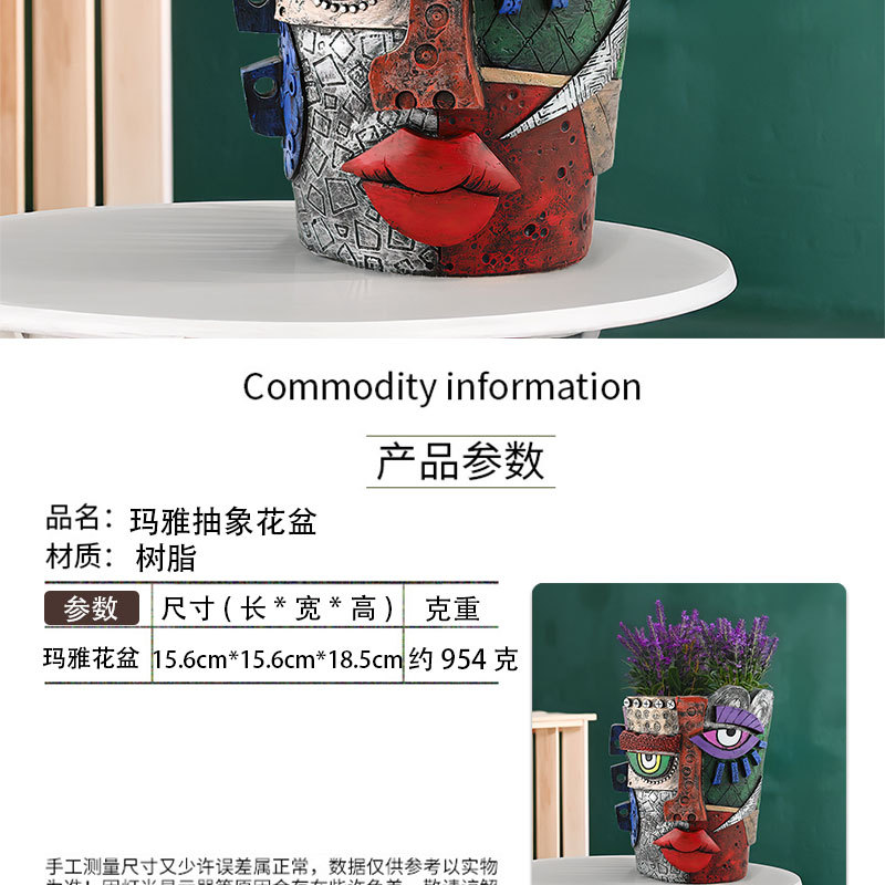 국경 간 새로운 창조적 인 마야 추상 얼굴 꽃 냄비 수지 장식 개인화 된 아트 홈 정원 조경 장식스토어 가기