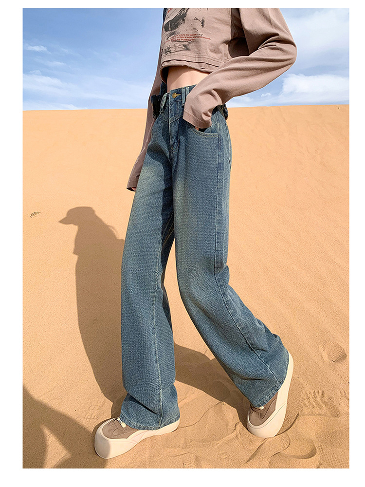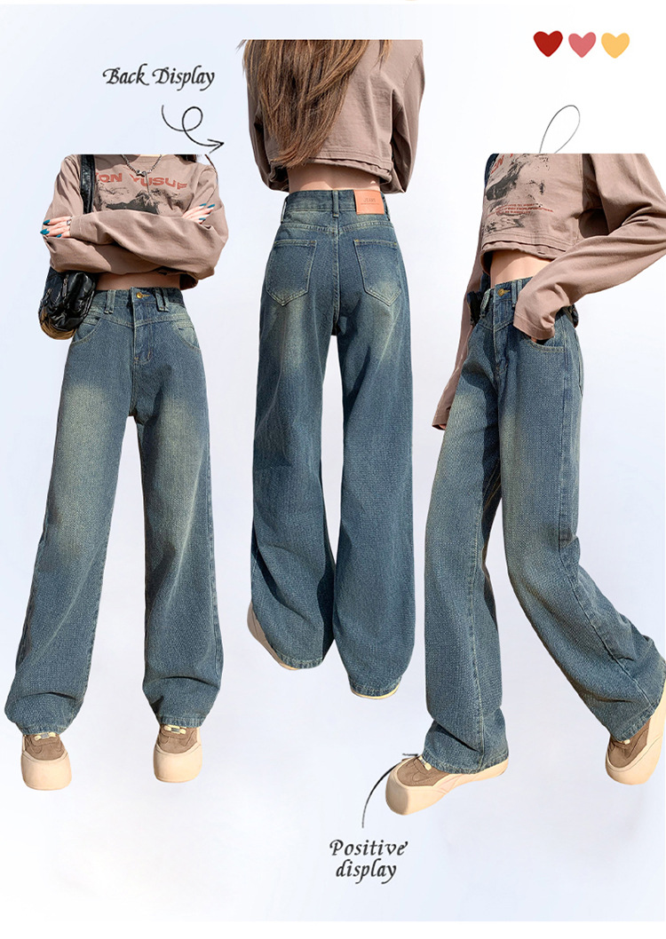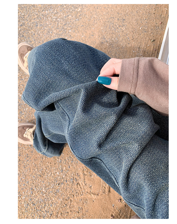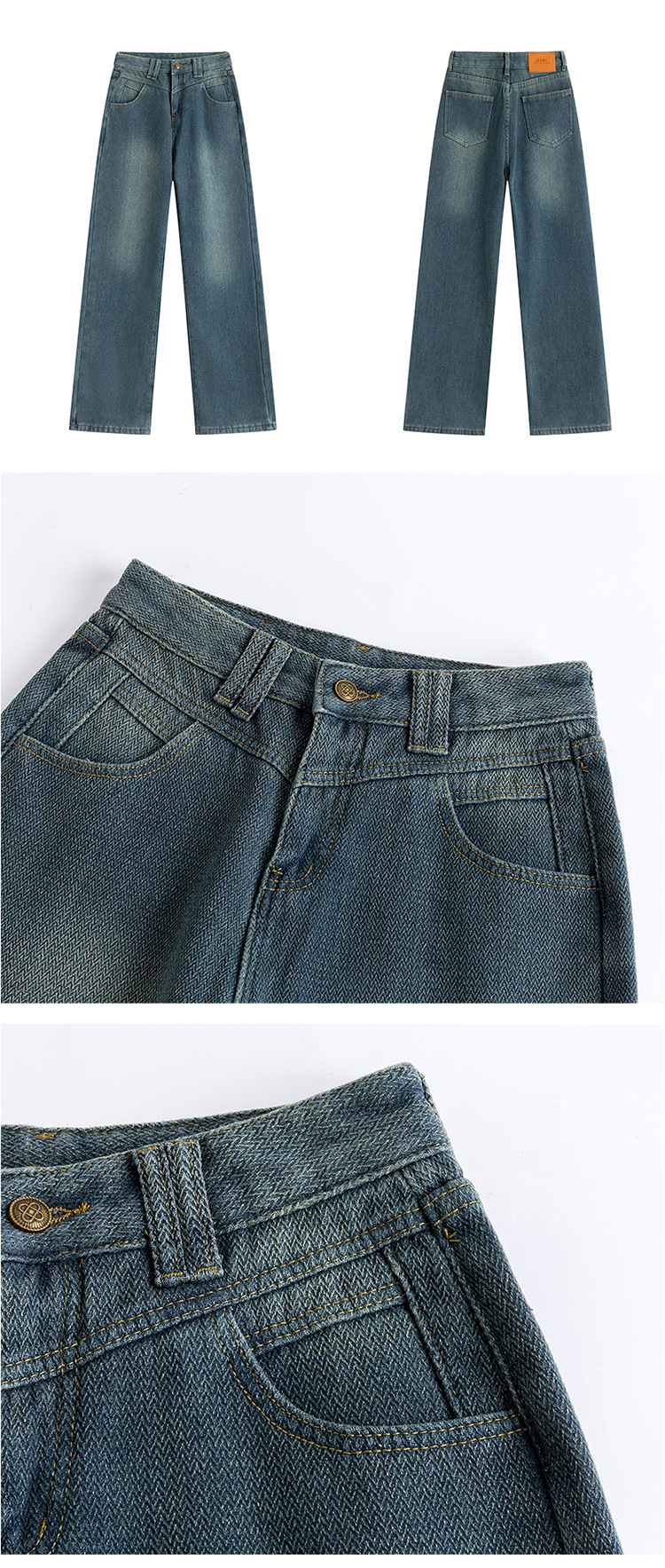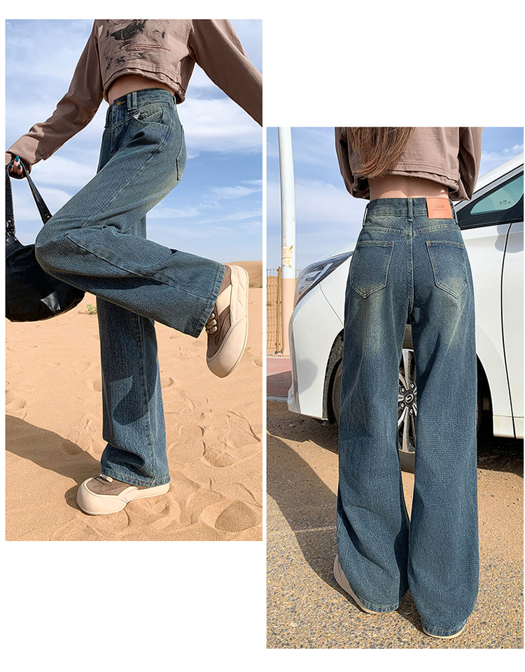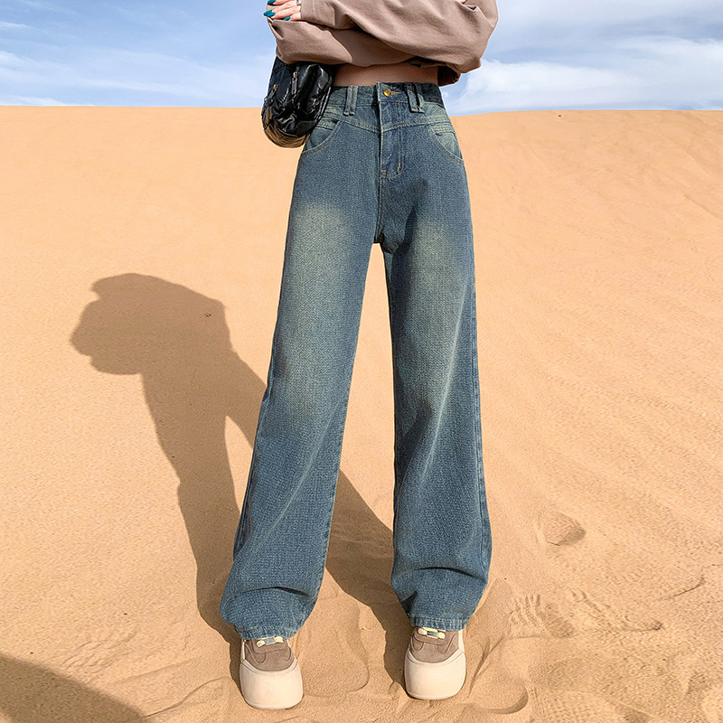 빈티지 블루 양각 별 패턴 넓은 다리 청바지 여성용 느슨한 높은 허리 슬림 다운 스타일 캐주얼 좁은 걸레 바지스토어 가기