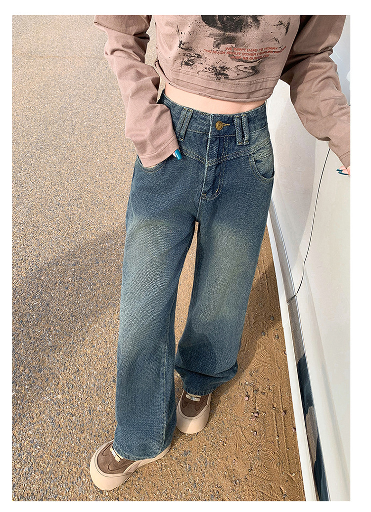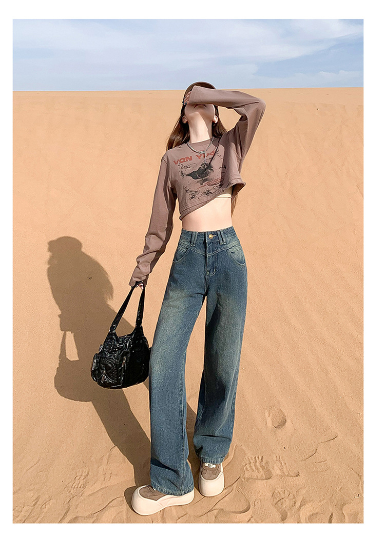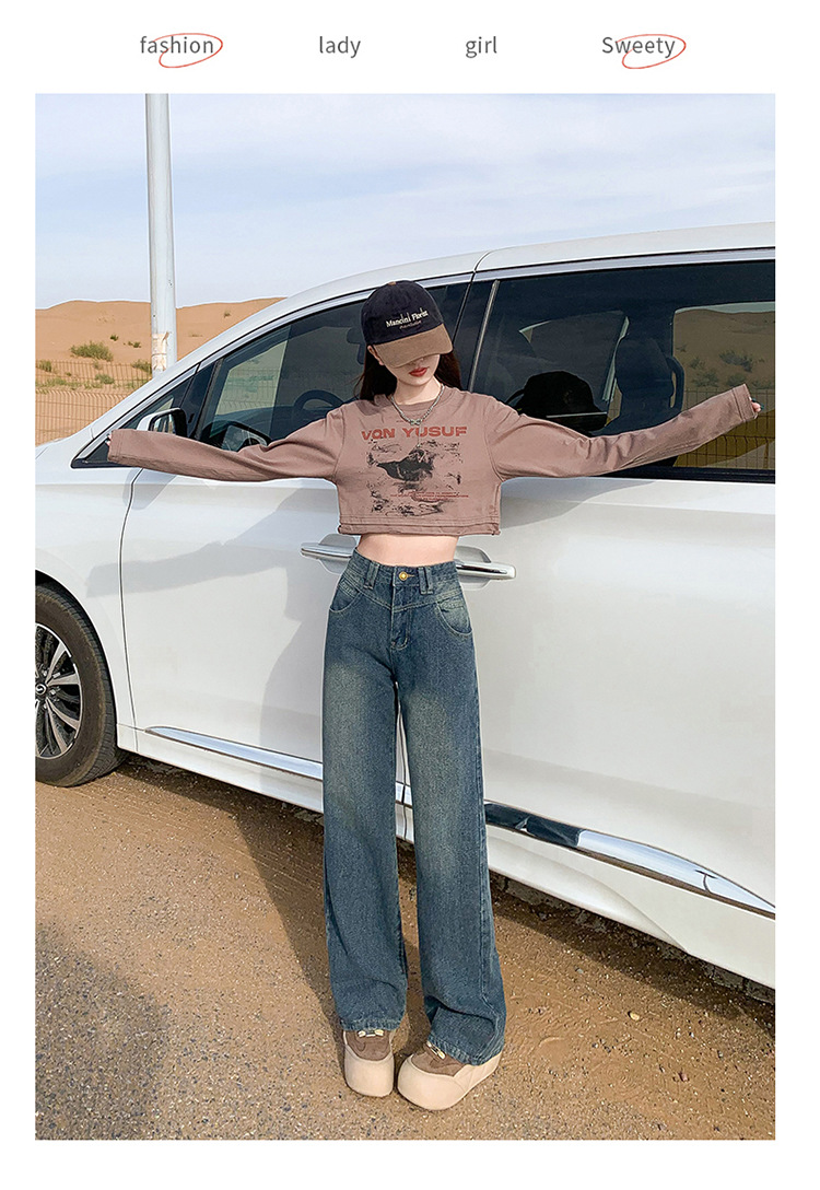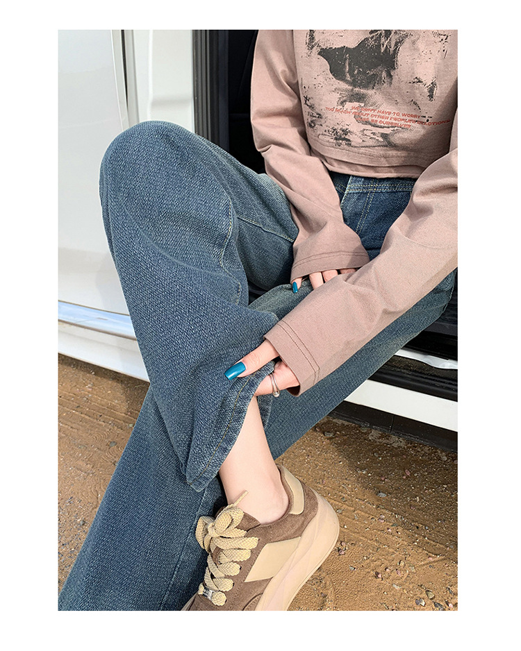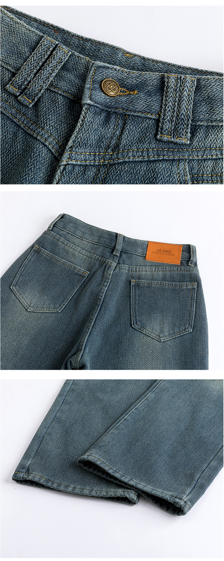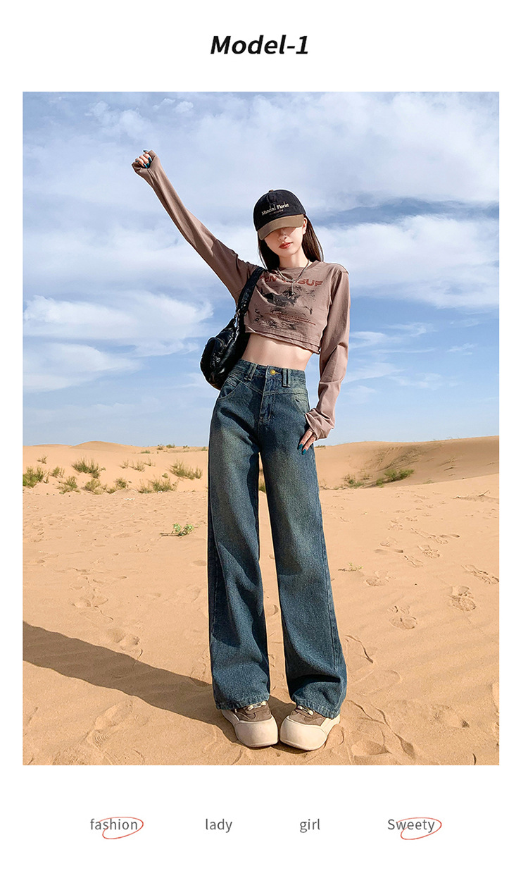 빈티지 블루 양각 별 패턴 넓은 다리 청바지 여성용 느슨한 높은 허리 슬림 다운 스타일 캐주얼 좁은 걸레 바지스토어 가기