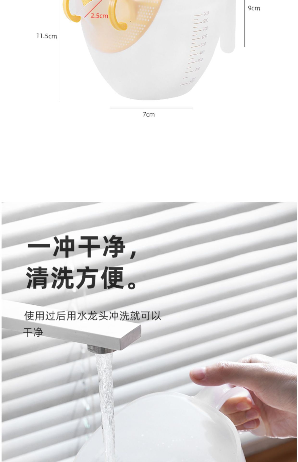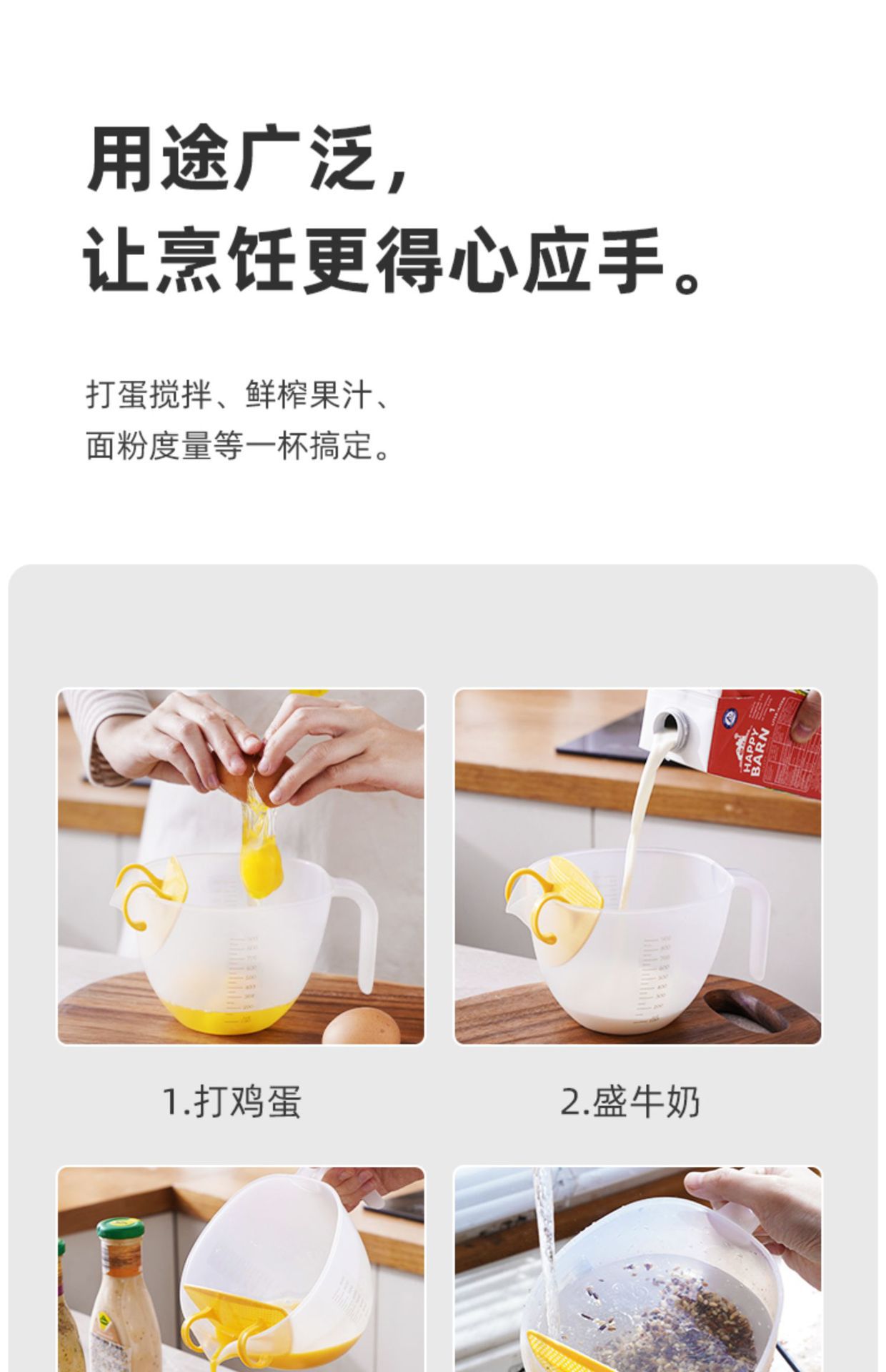 규모가 큰 계란 액체 여과 컵 주방 쌀 그릇 식품 등급 베이킹 플라스틱 계란 치기 컵
