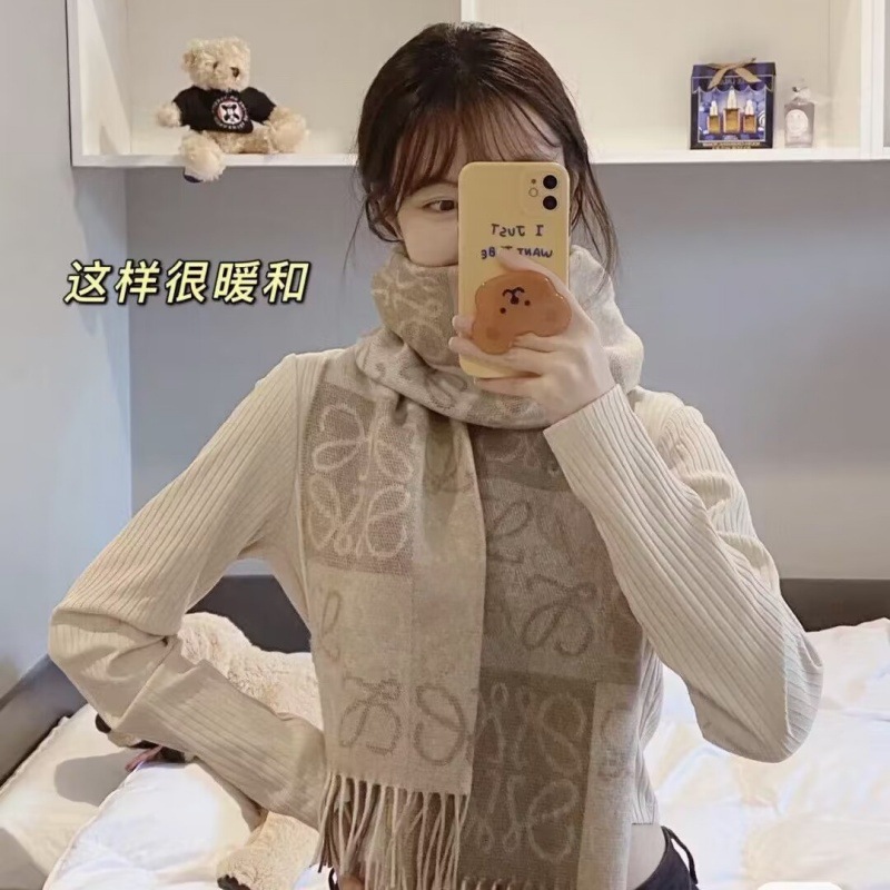여성을위한 우유 차 컬러 체스와 카드 편지 양면 캐시미어 스카프 Loe Lowe Jacquard 울 스카프스토어 가기