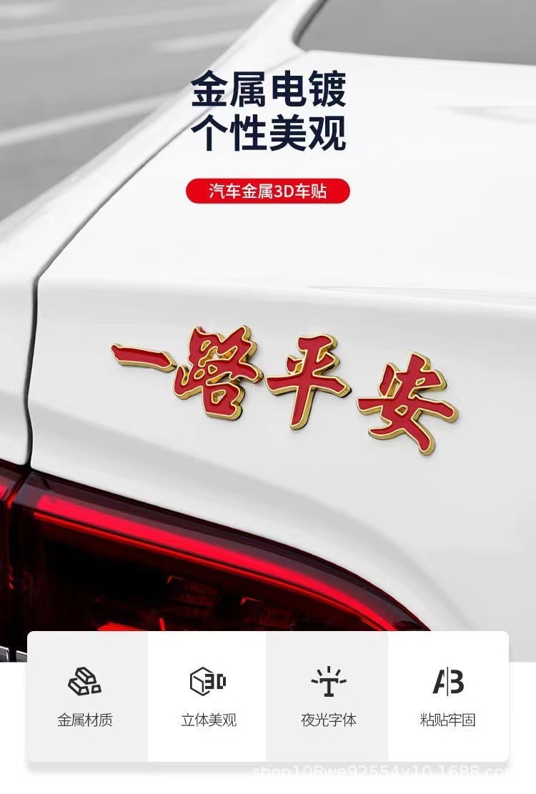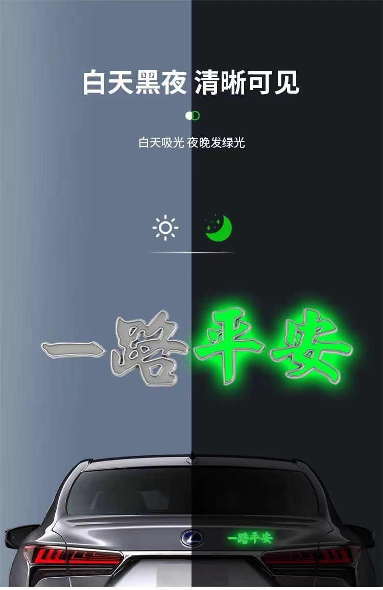 자동차 금속 로고 스티커, 원활한 여정과 안전한 길을 기원하는 야광 금속 자동차 장식 스티커, 재고 있음, 대량 배송 가능스토어 가기