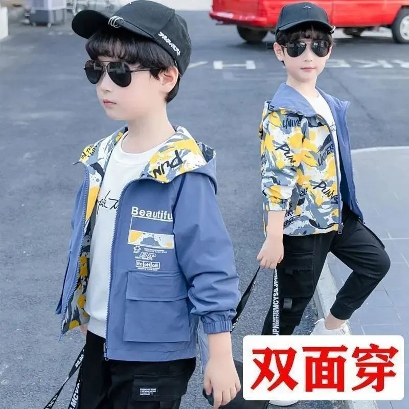 남아 코트 봄, 가을 양면 착용 2025 새로운 스타일 중대형 아동용 멋지고 멋진 얇은 남아 봄 상의 트렌디스토어 가기