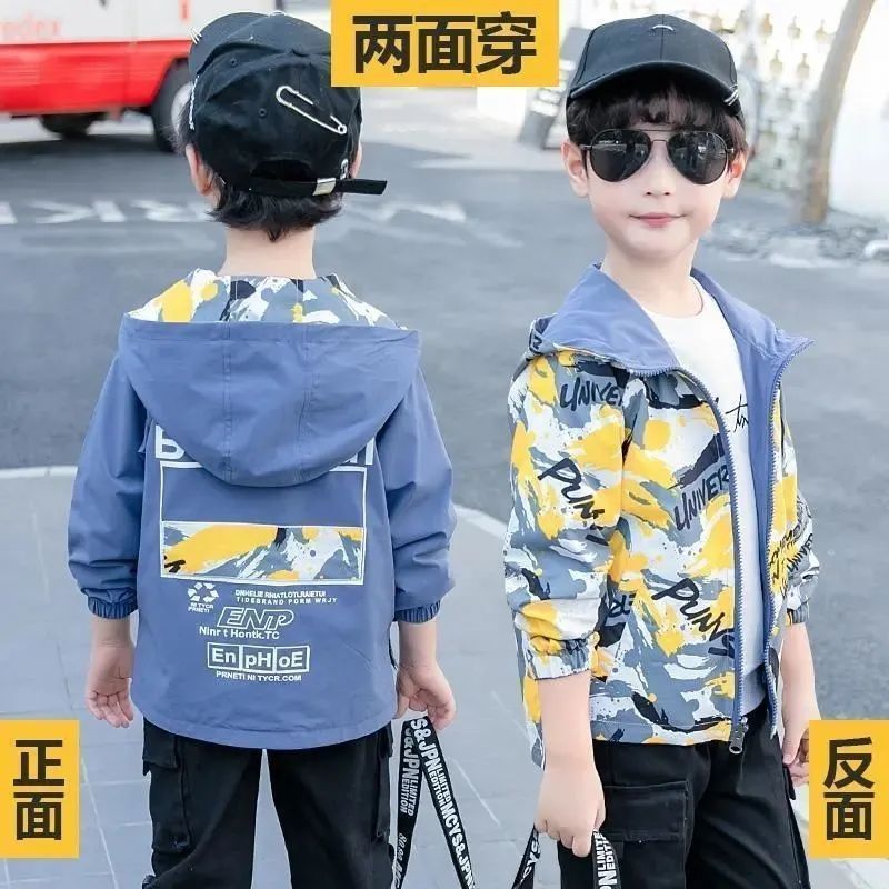 남아 코트 봄, 가을 양면 착용 2025 새로운 스타일 중대형 아동용 멋지고 멋진 얇은 남아 봄 상의 트렌디