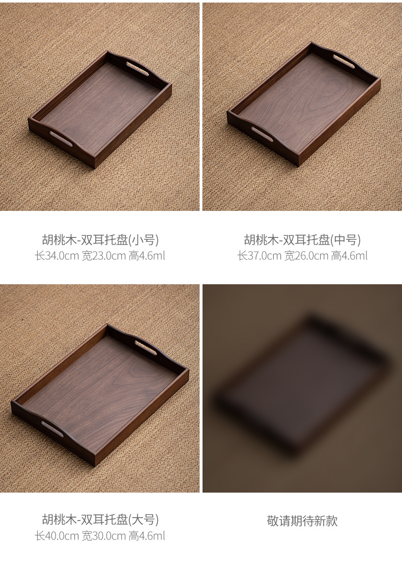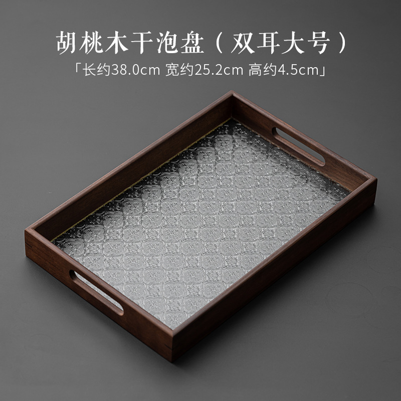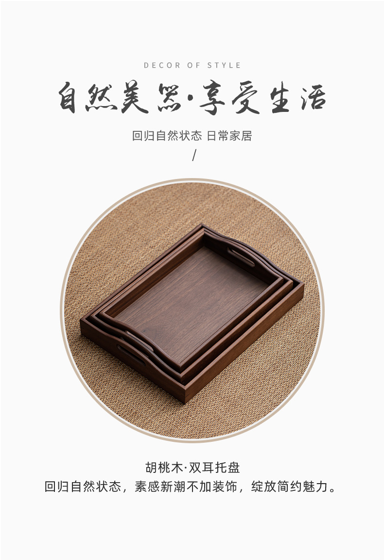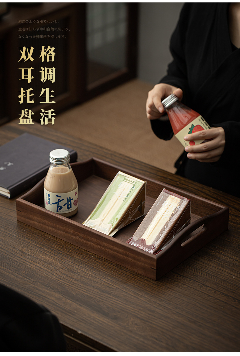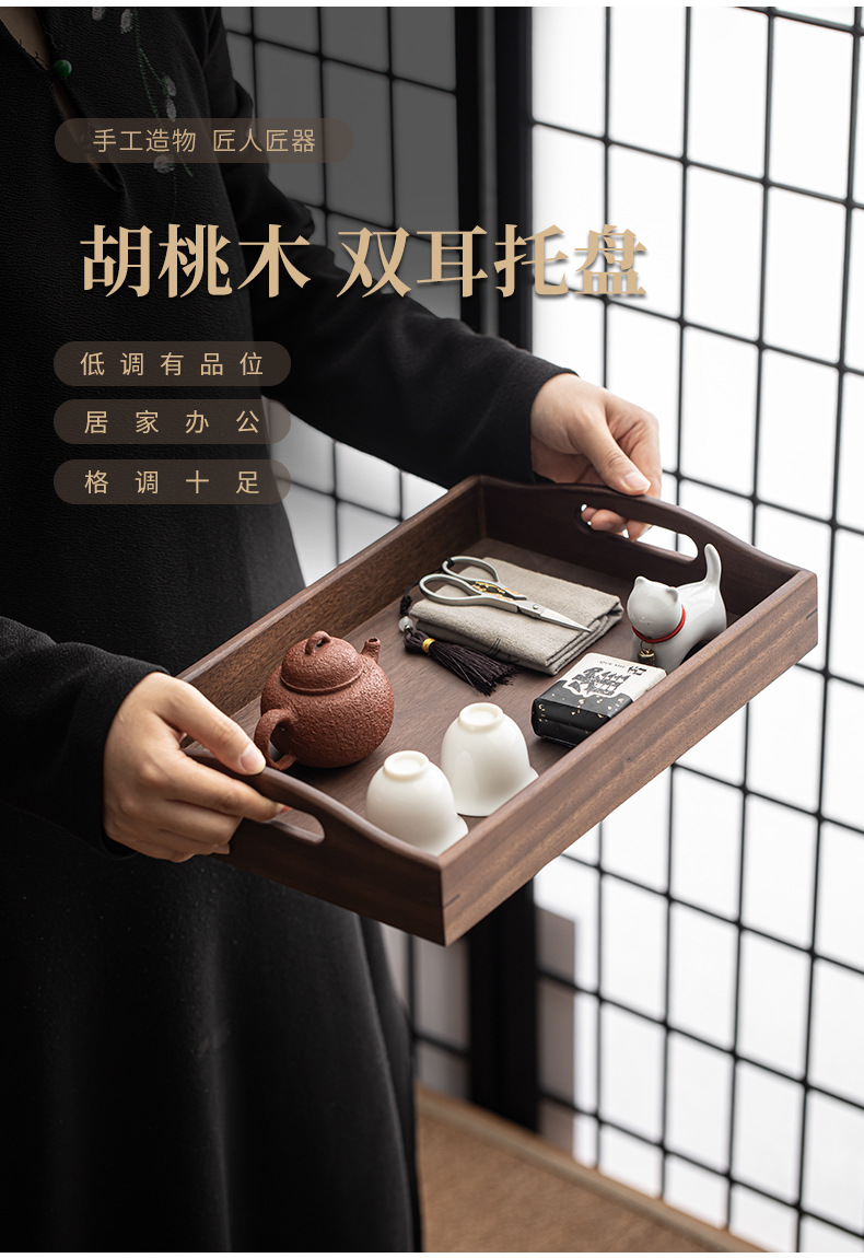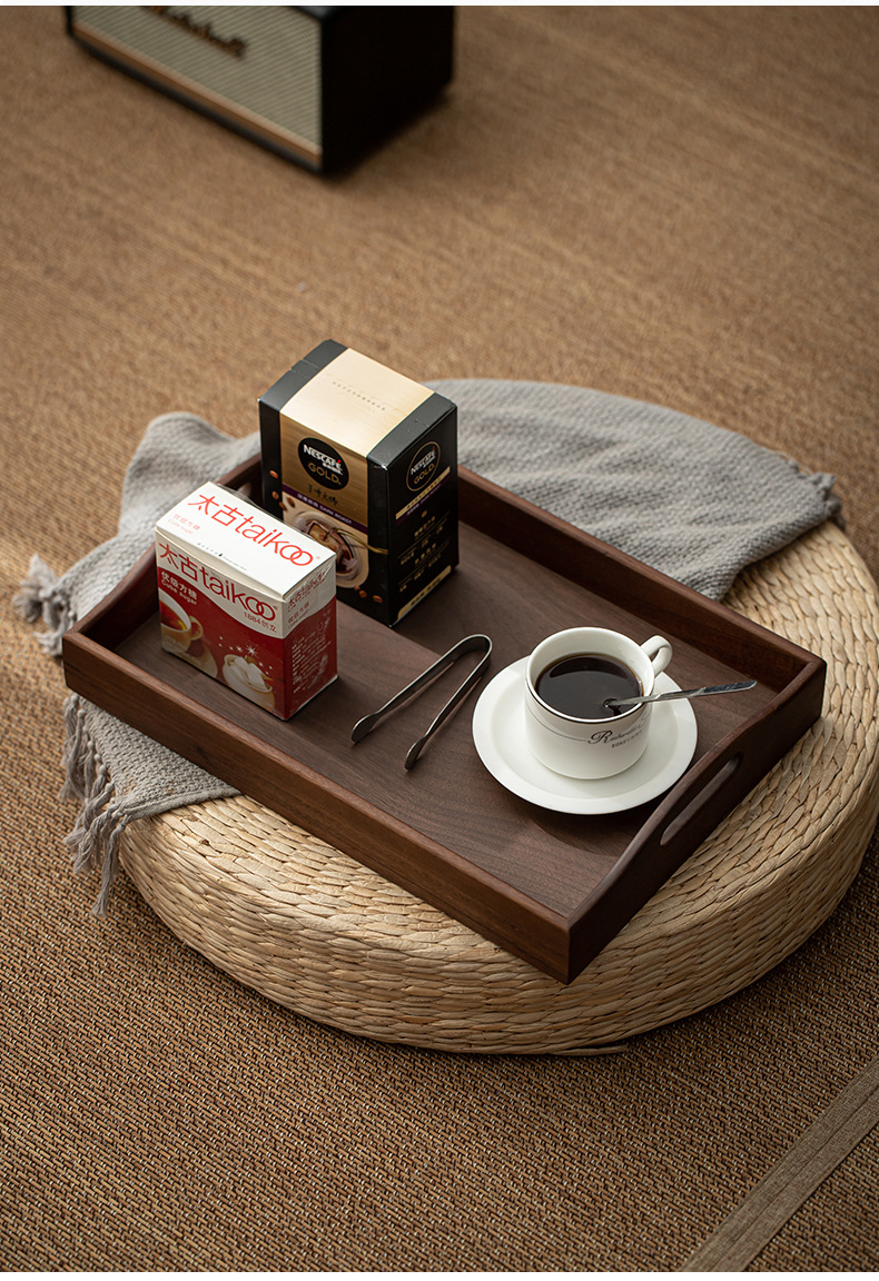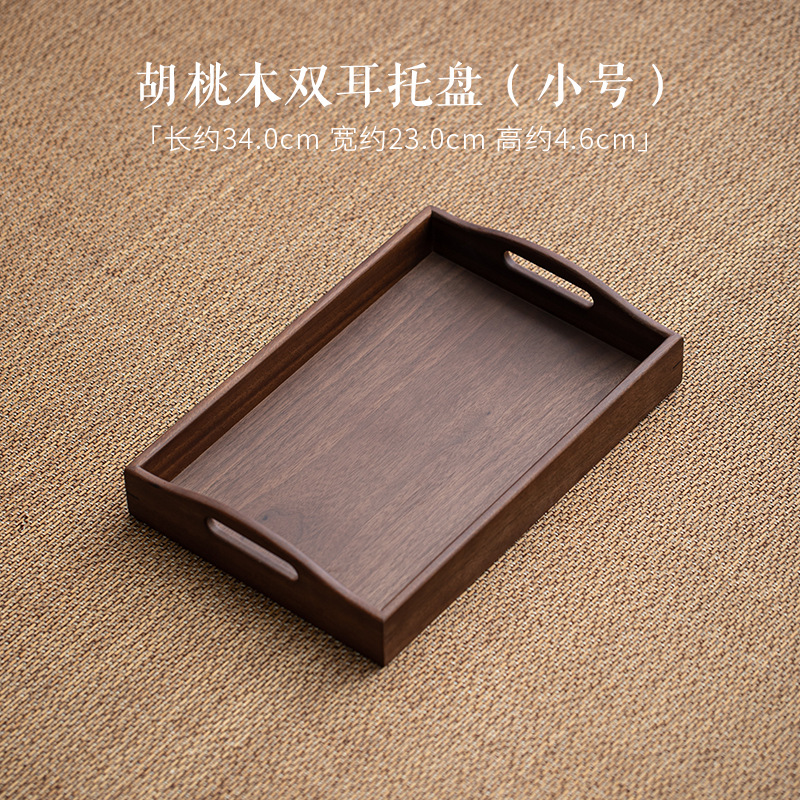 호두 휴대용 트레이 바이노럴 스퀘어 솔리드 우드 티 트레이 상쾌한 트레이 차 테이블 차 테이블 저장 트레이 다이닝 트레이