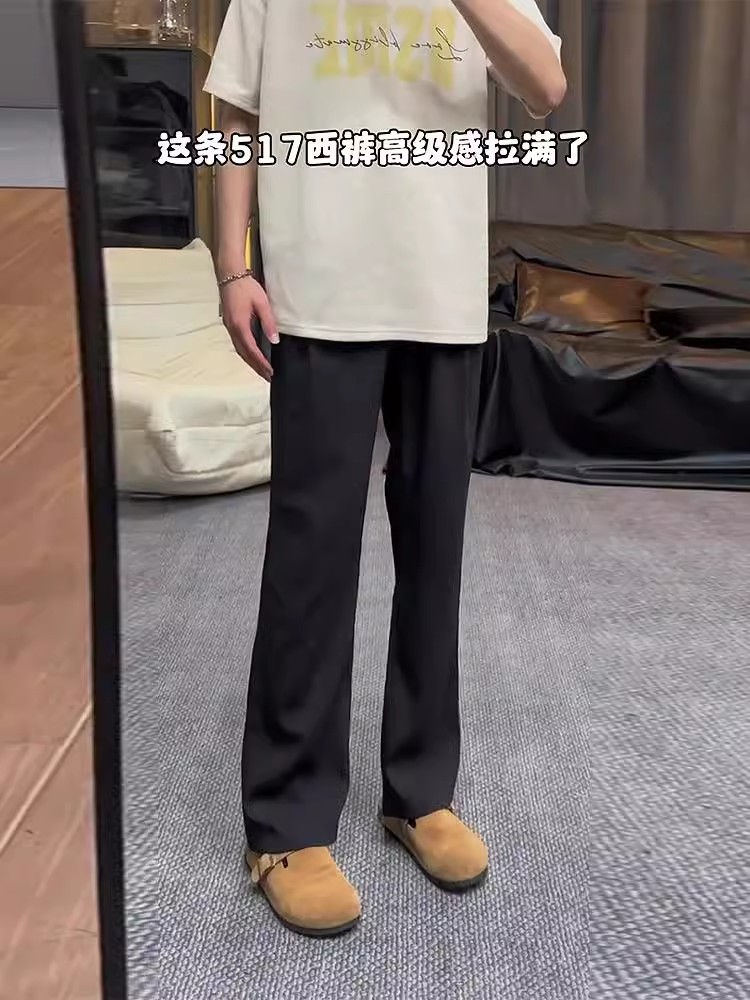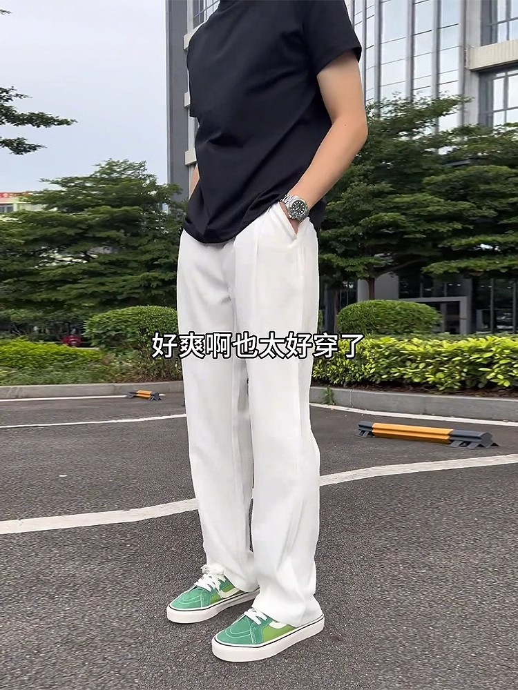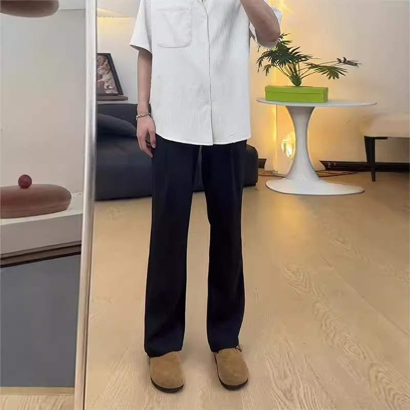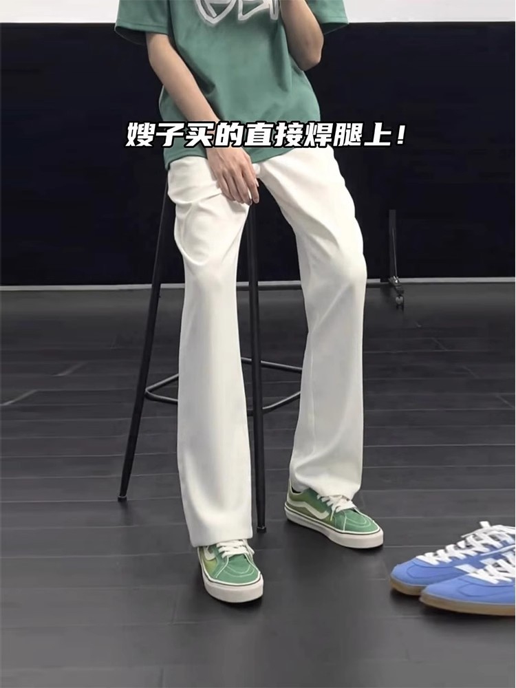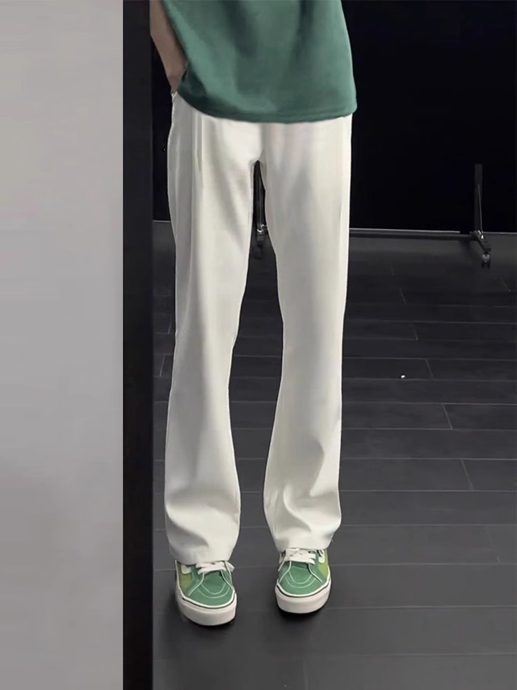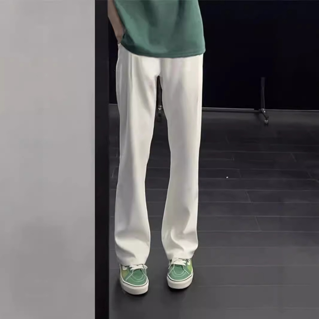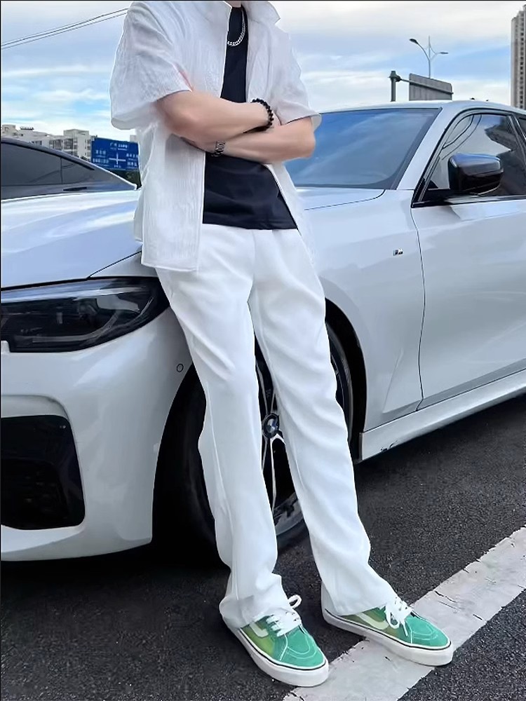 공장 직접 공급 화이트 아이스 실크 마체테 바지 남성용 클린 핏 센스 고급 슬림 핏 마이크로 팬츠 가을