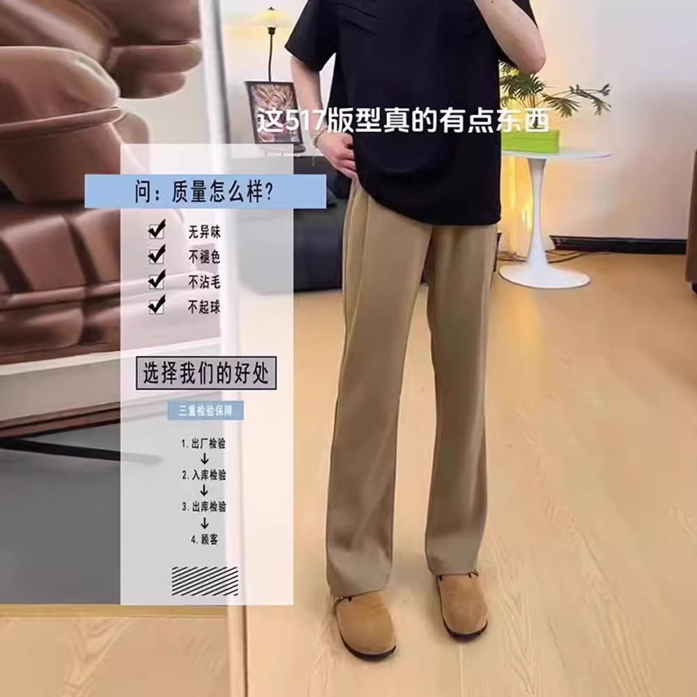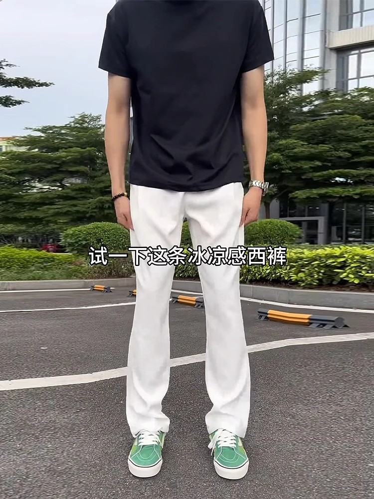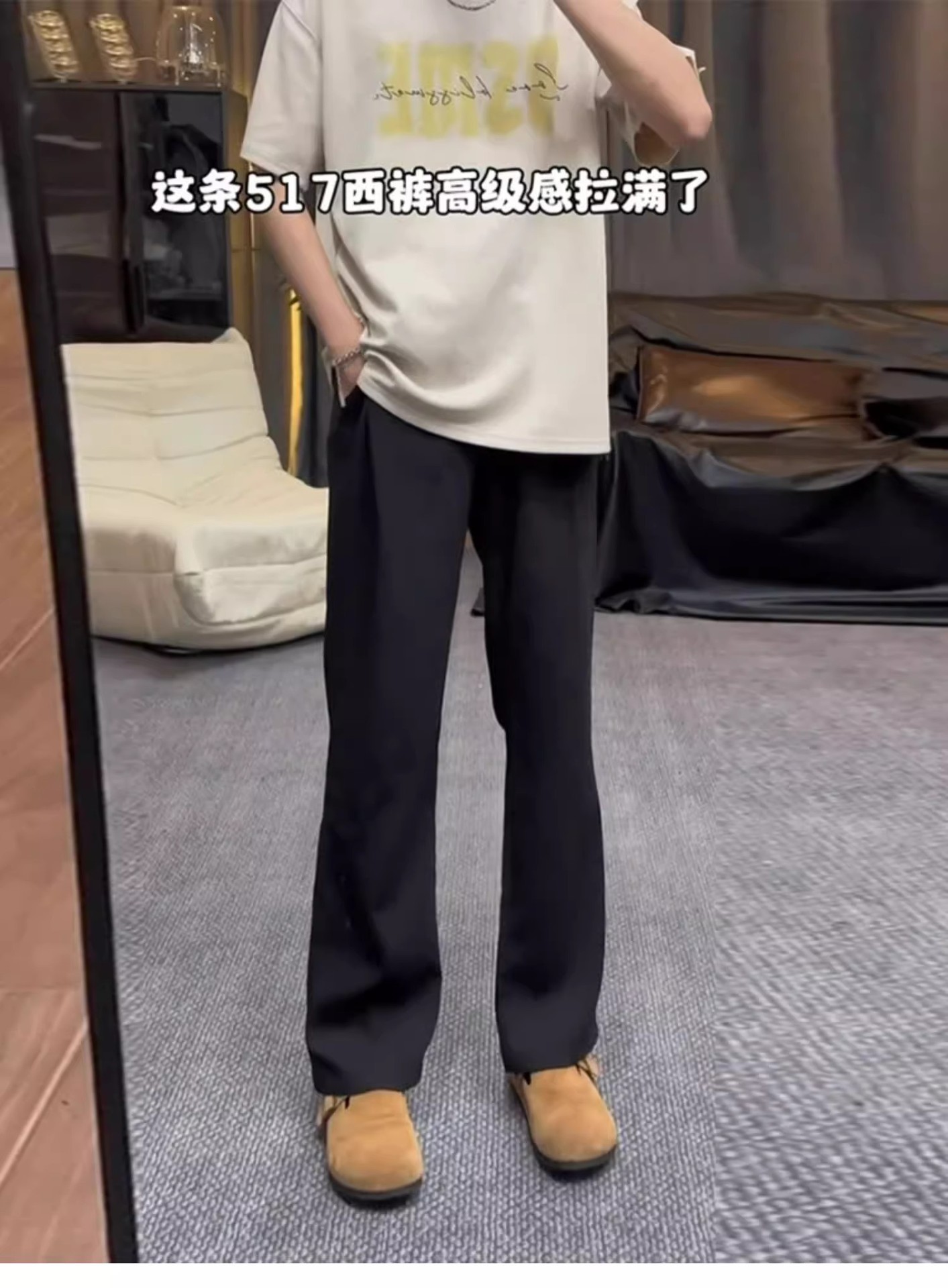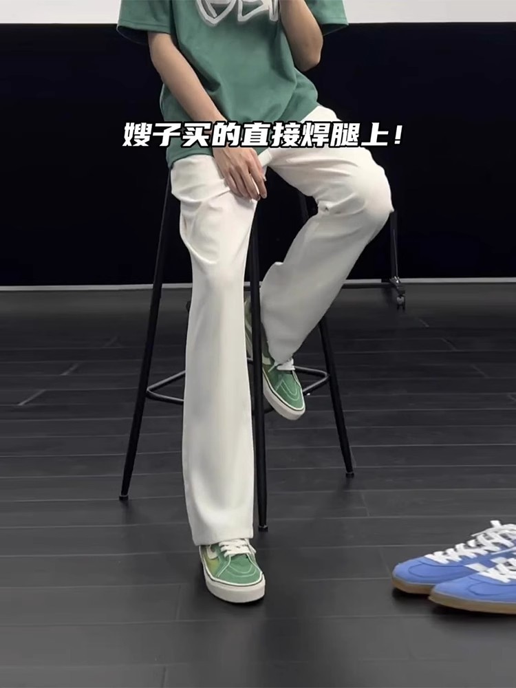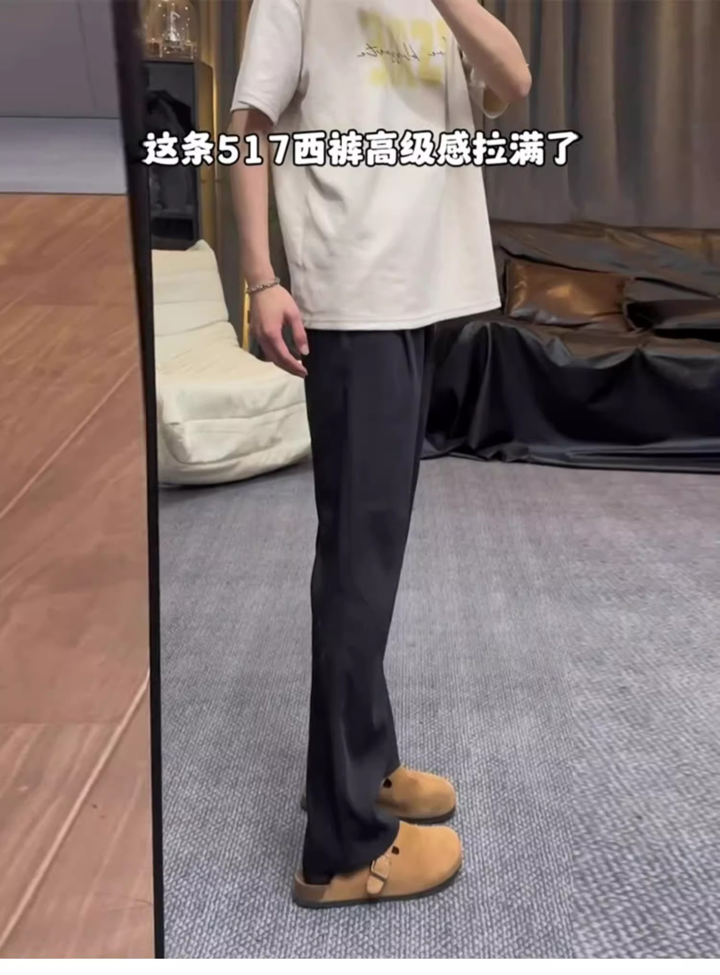 공장 직접 공급 화이트 아이스 실크 마체테 바지 남성용 클린 핏 센스 고급 슬림 핏 마이크로 팬츠 가을