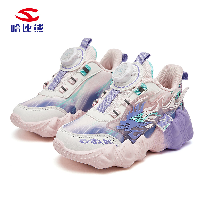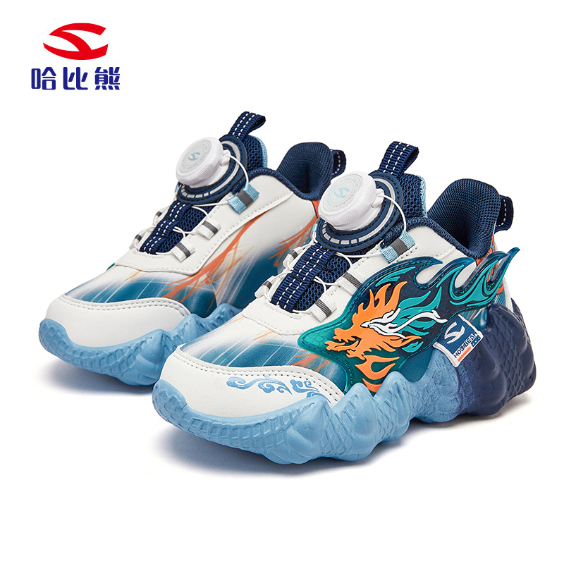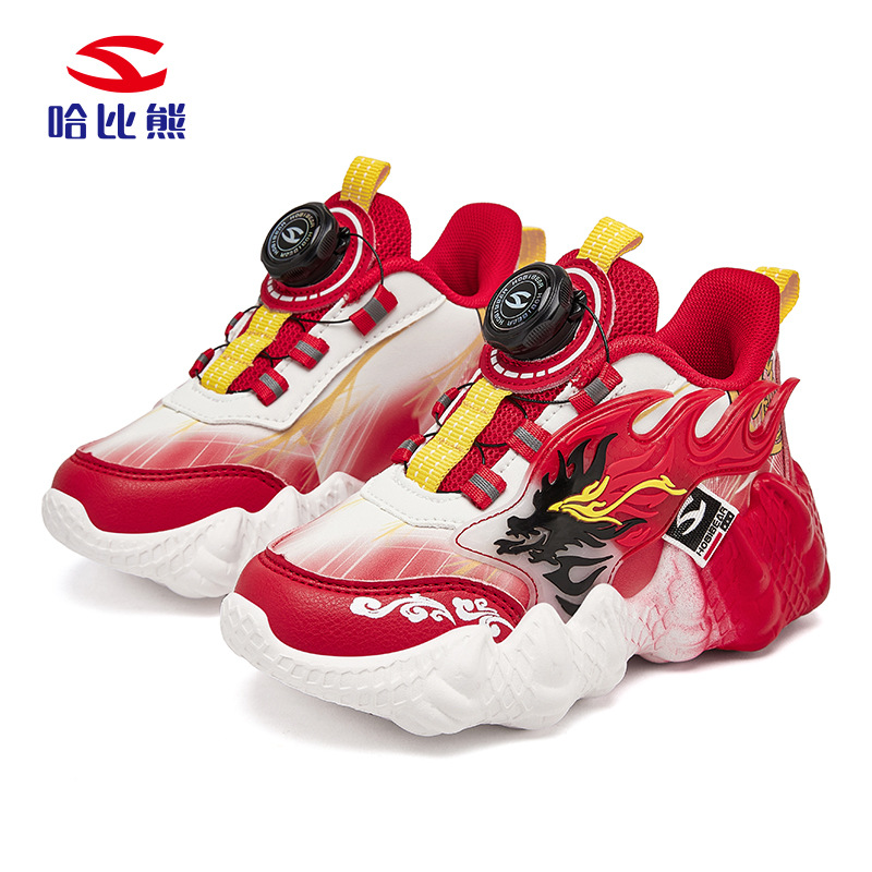 하비브 베어 가죽 소년 운동화 중국 빨간색 트렌디 한 버튼 신발 봄과 가을 소녀 캐주얼 신발 머리카락 세대