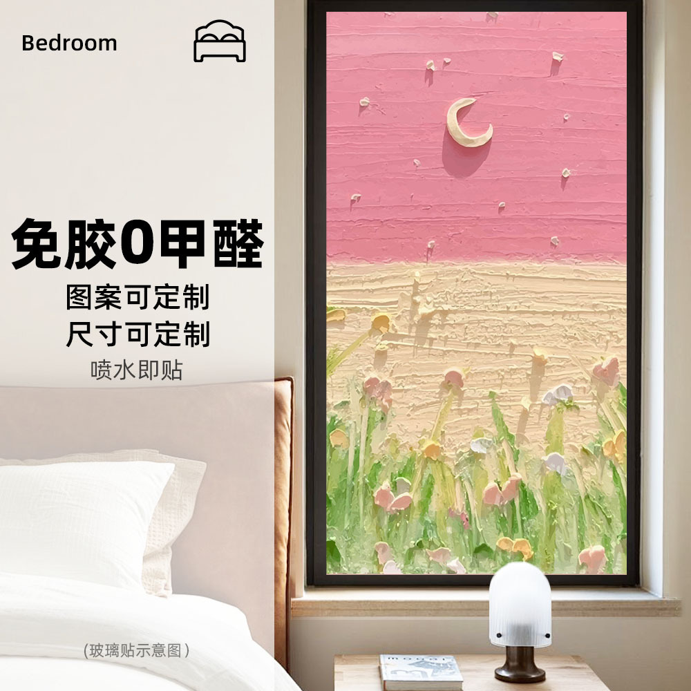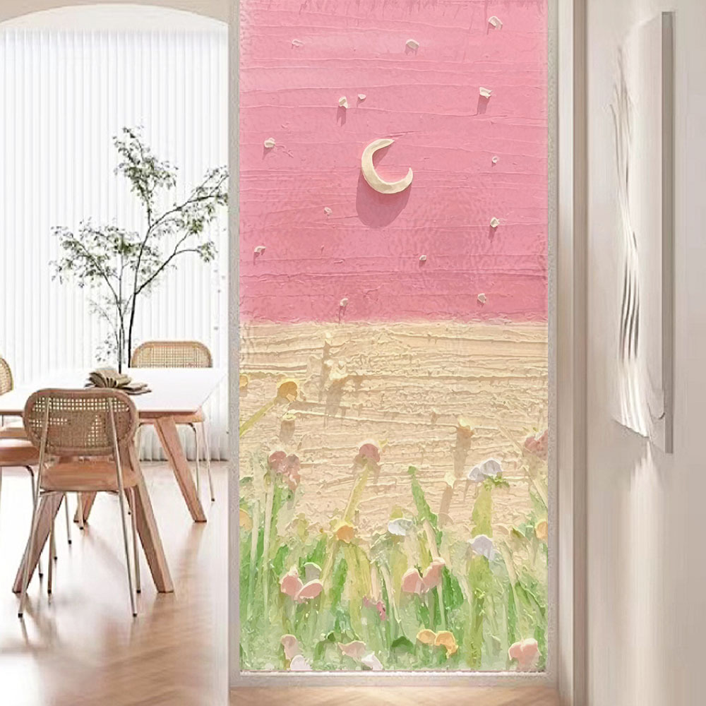 Yiyao BLT5125 바람과 달 정원 유리 스티커 거실 주방 유리 문 접착제-무료 정전기 스티커 아래 만화 유화스토어 가기