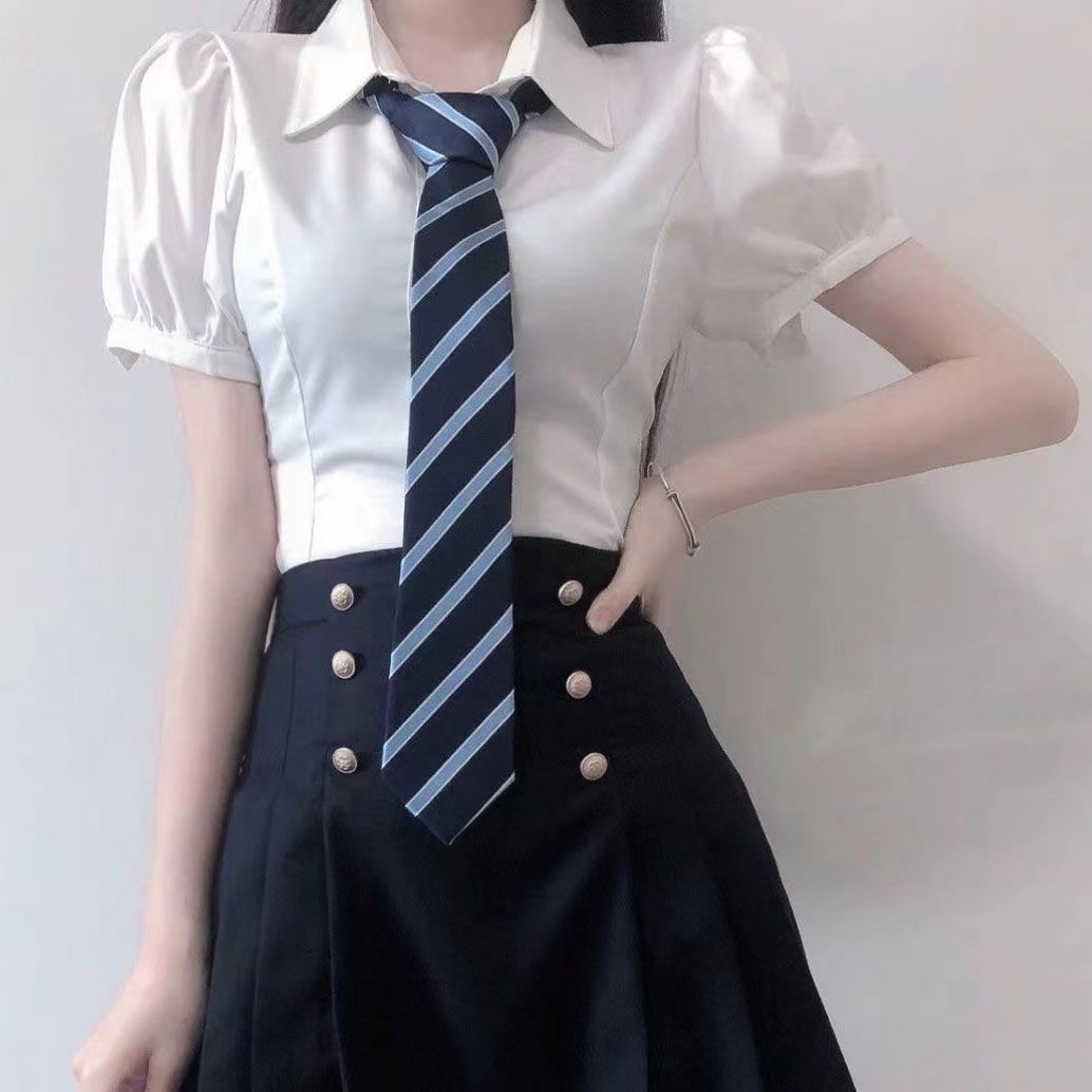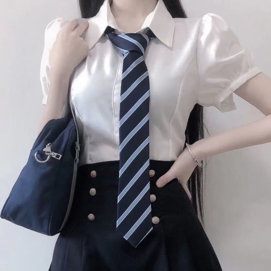 Jk 넥타이 여성 학생 대학 스타일 무료 비트 타이 나비 넥타이 셔츠 학교 파란색과 흰색 줄무늬 패션 넥타이