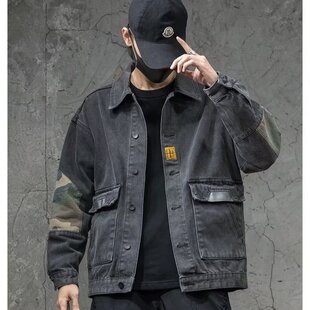 가을과 겨울 남자 툴링 데님 코트 일본 패션 브랜드 느슨한 올매치 데님 셔츠 작업 착용 방지 작업복 패션스토어 가기