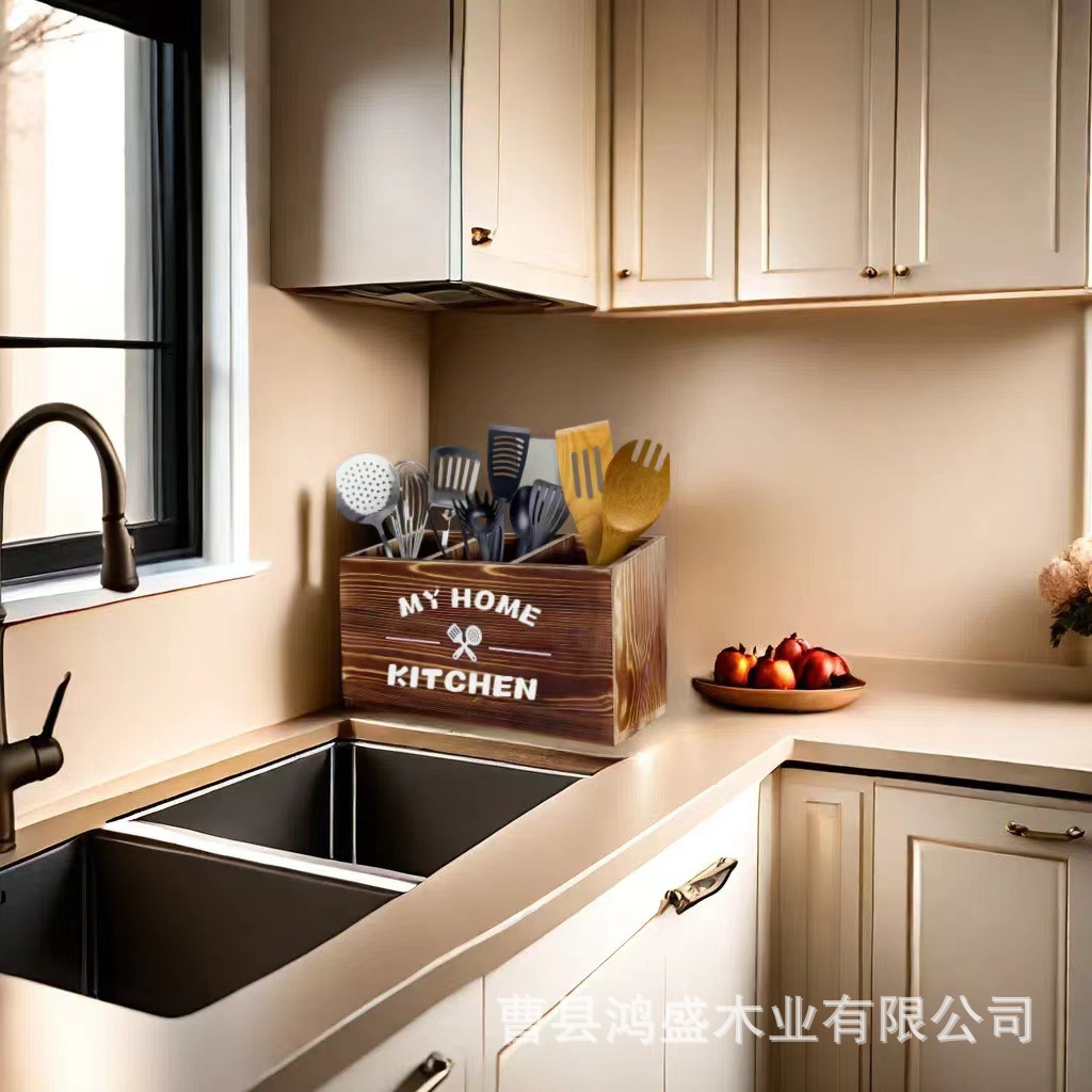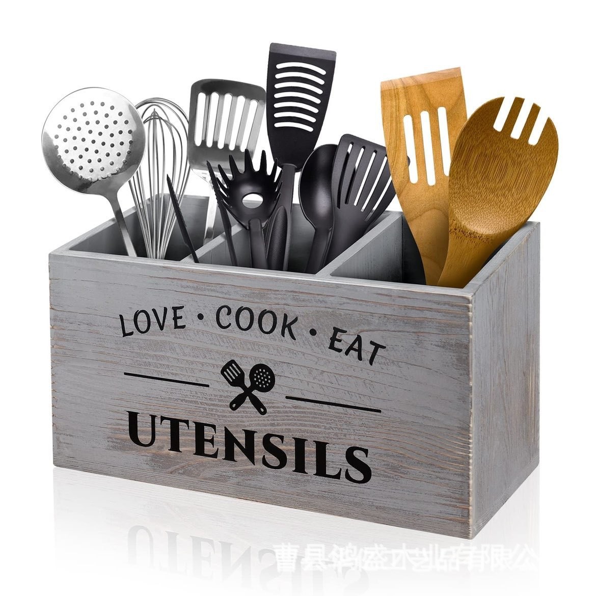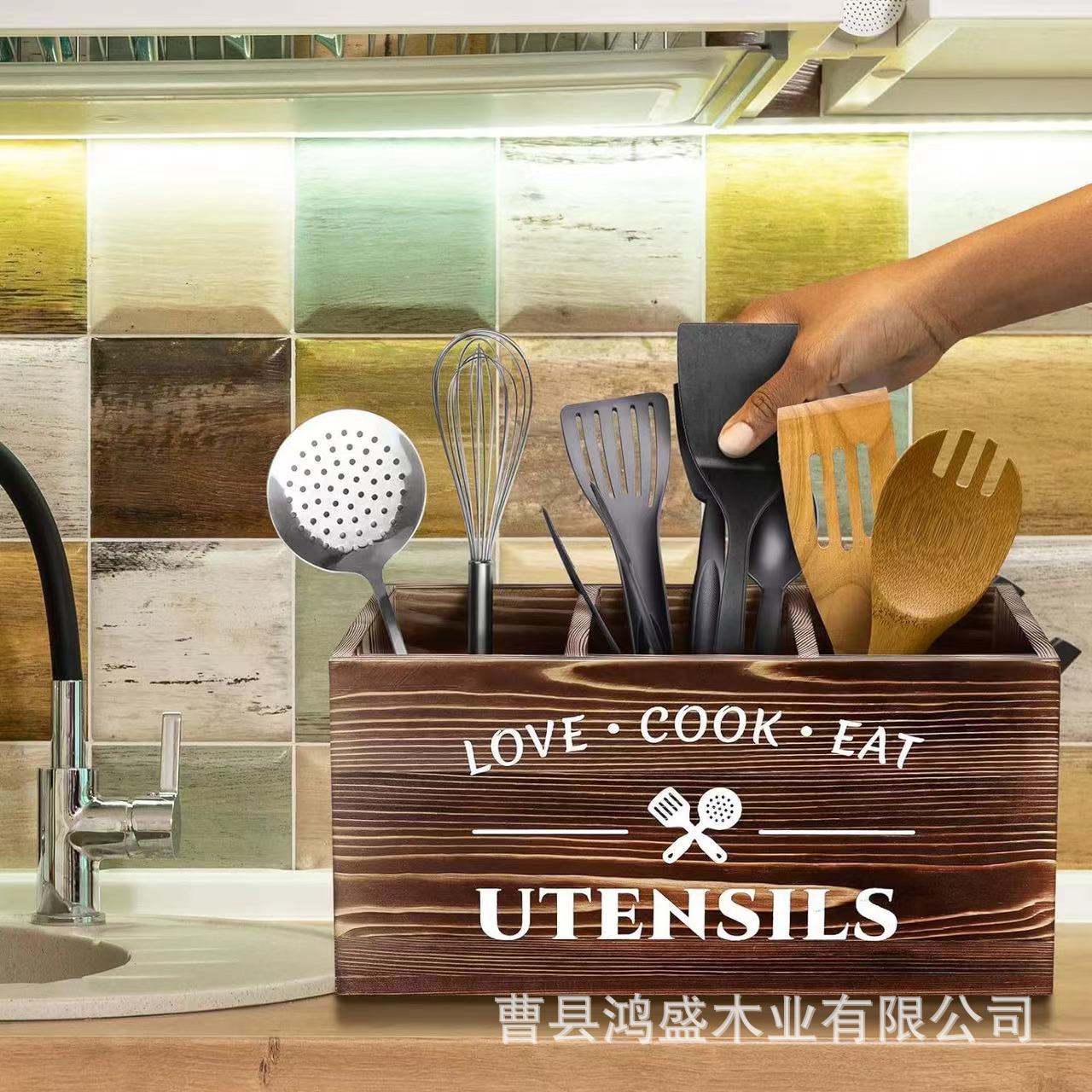 국경 간 복고풍 데스크탑 나무 저장 상자 가정용 주방 멀티 그리드 나이프와 포크 스푼 식기 마감 보관 상자스토어 가기