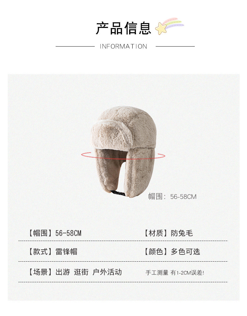 2024 겨울 따뜻한 남자와 여자의 Lei Feng 모자 감기 방지 야외 토끼 모피 패션 캐주얼 큰 귀 모자 사이클링 방풍 모자