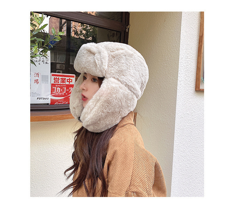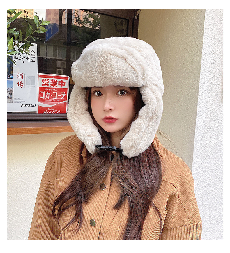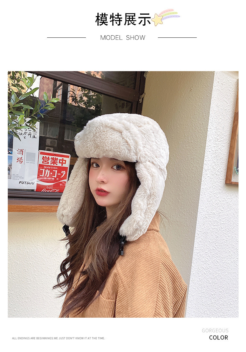 2024 겨울 따뜻한 남자와 여자의 Lei Feng 모자 감기 방지 야외 토끼 모피 패션 캐주얼 큰 귀 모자 사이클링 방풍 모자스토어 가기