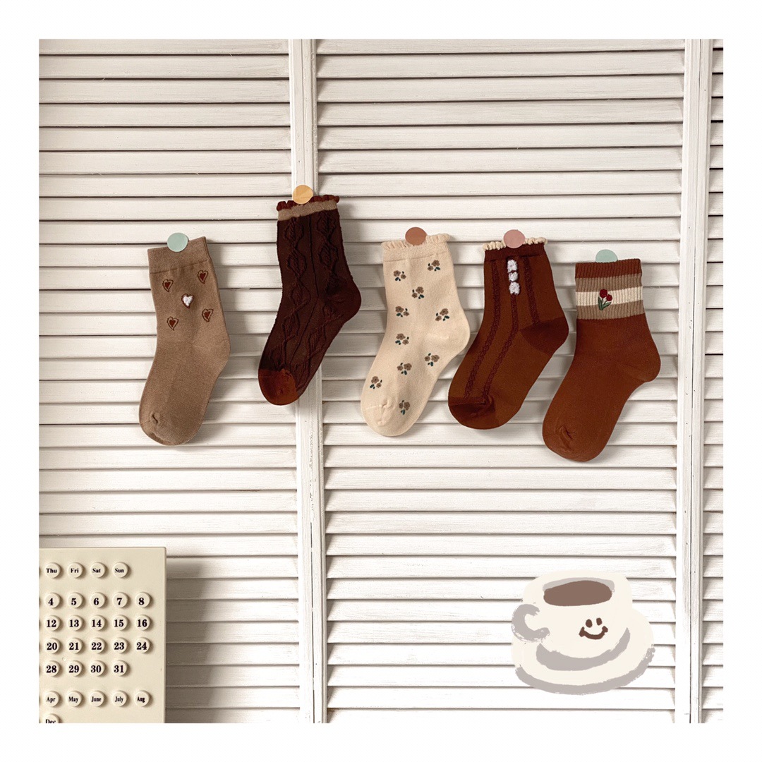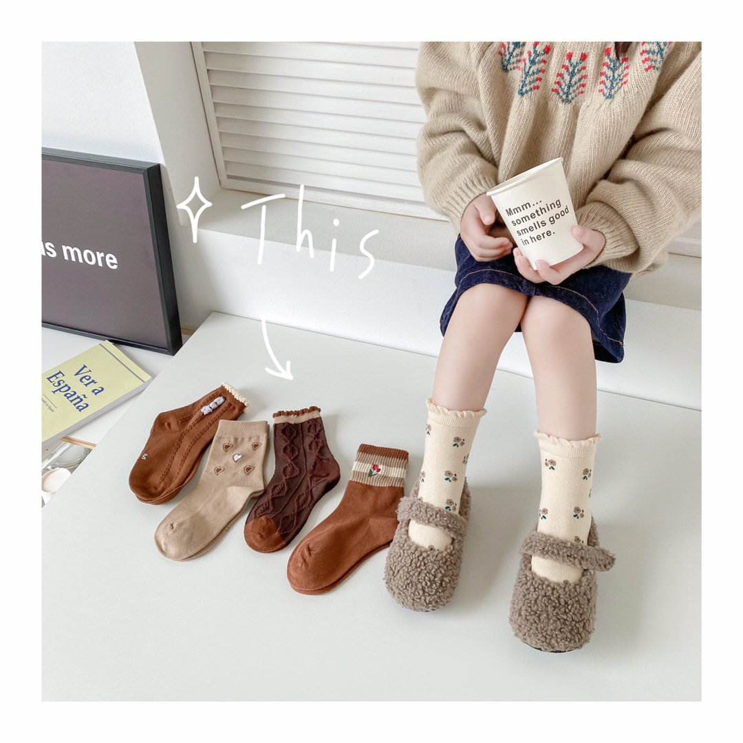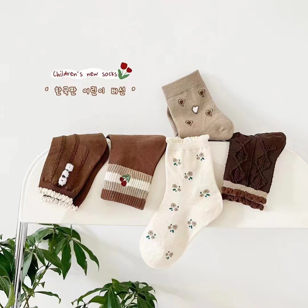 Wang Tuya 가을 겨울 2024 새로운 어린이 양말 소년과 소녀 아기 어린이 양말 짧은 양말 일본 작은 꽃스토어 가기