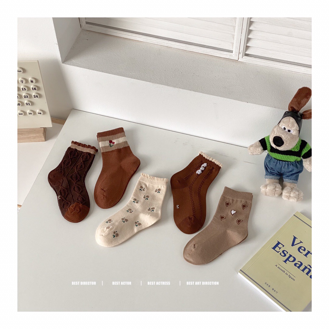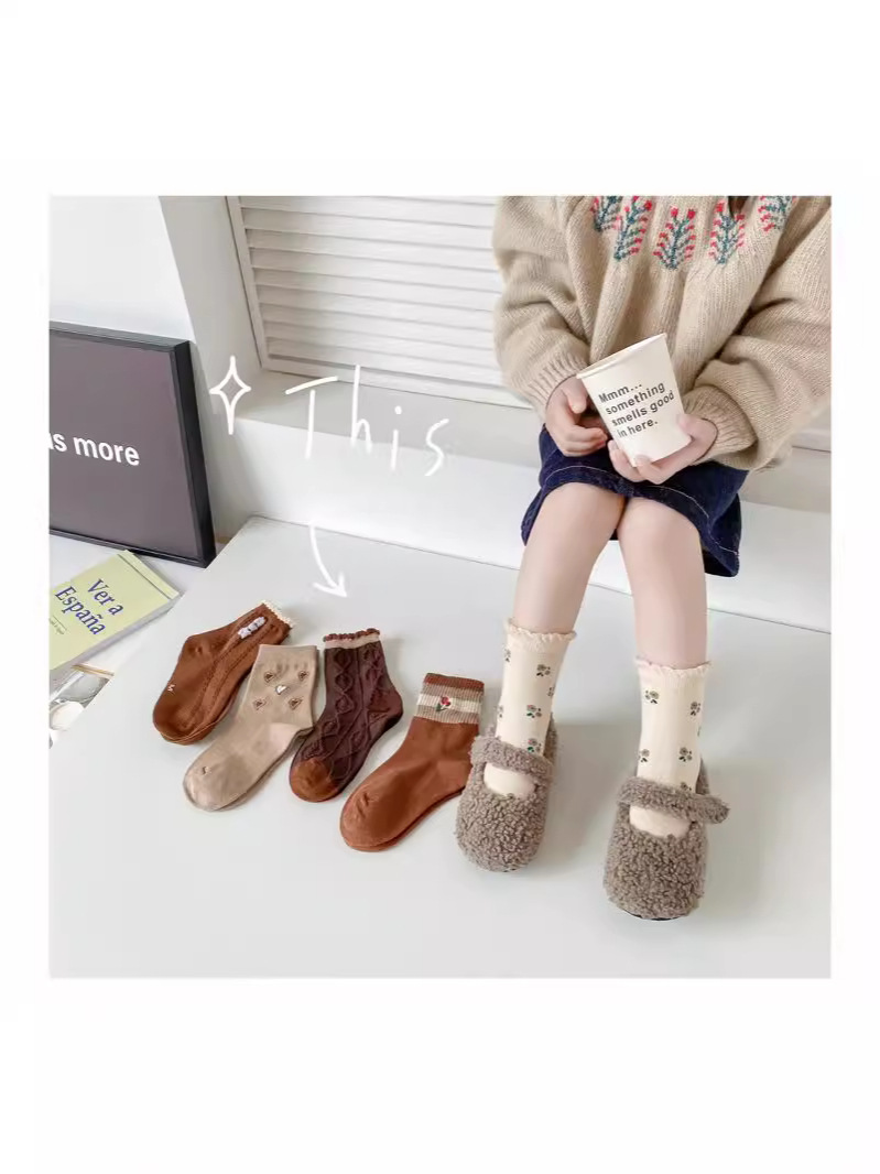 Wang Tuya 가을 겨울 2024 새로운 어린이 양말 소년과 소녀 아기 어린이 양말 짧은 양말 일본 작은 꽃