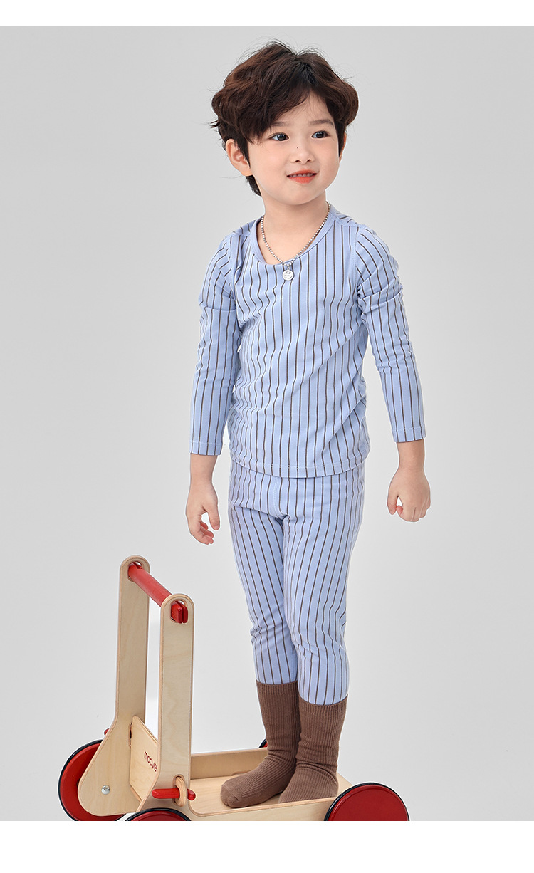 ZYZ 가을과 겨울 어린이 홈 의류 새로운 간단한 줄무늬 어린이 가을 옷과 바지 클래스 리크라 어린이 잠옷 세트스토어 가기