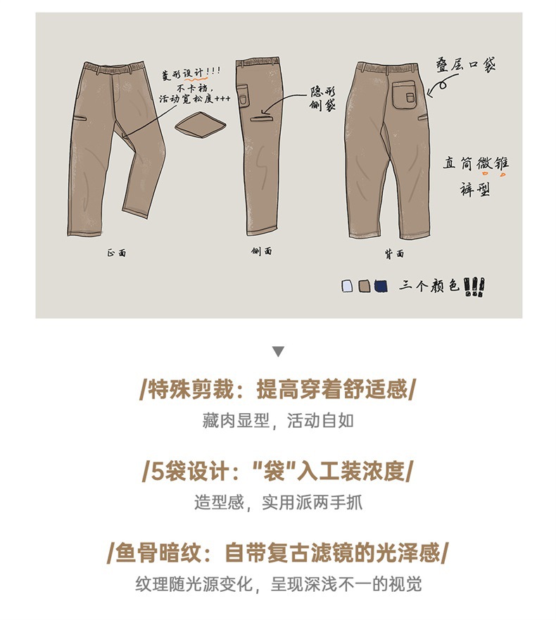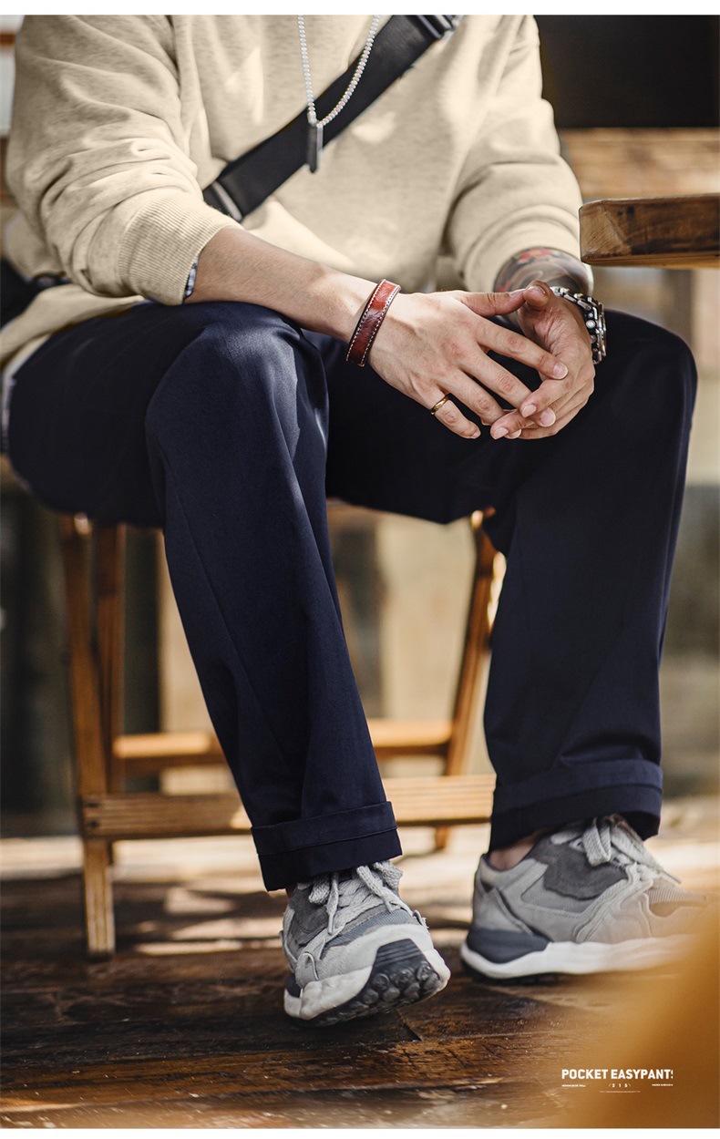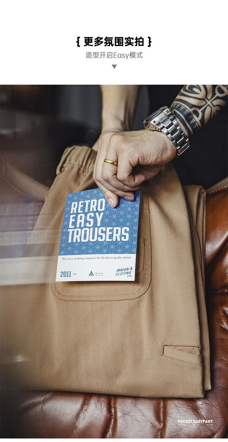 마든 워크웨어 아메리칸 스타일 헤링본 패턴 이지팬츠 캐주얼 팬츠 클린핏 스트레이트 테이퍼드 롱 팬츠 남성용 봄스토어 가기