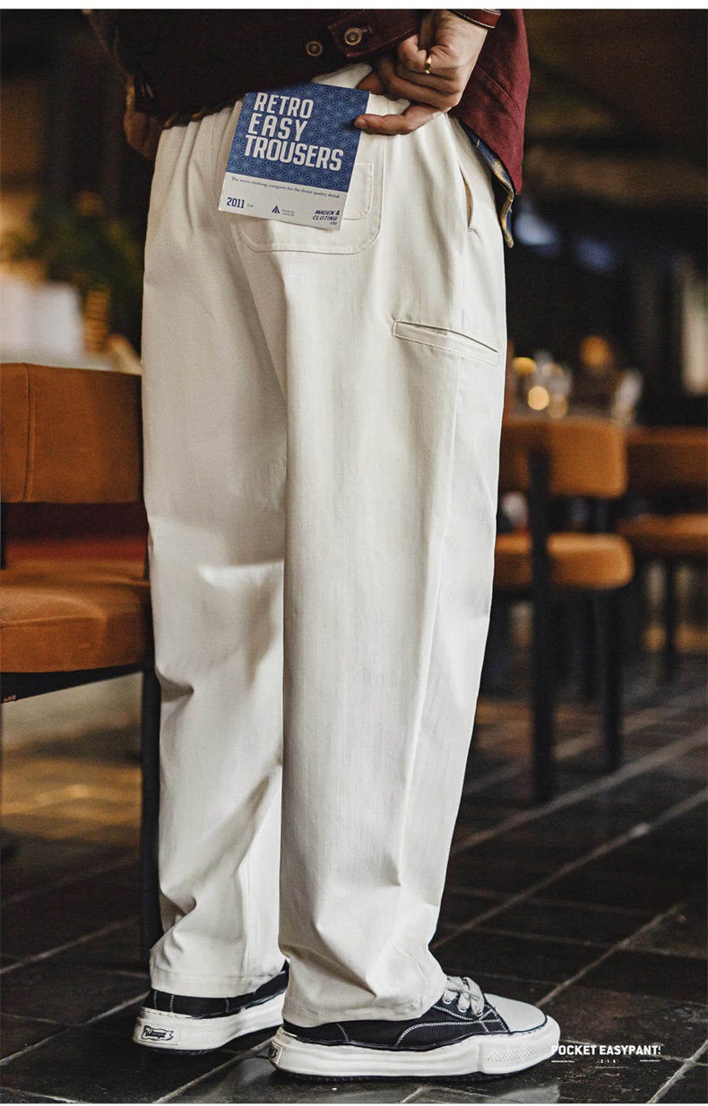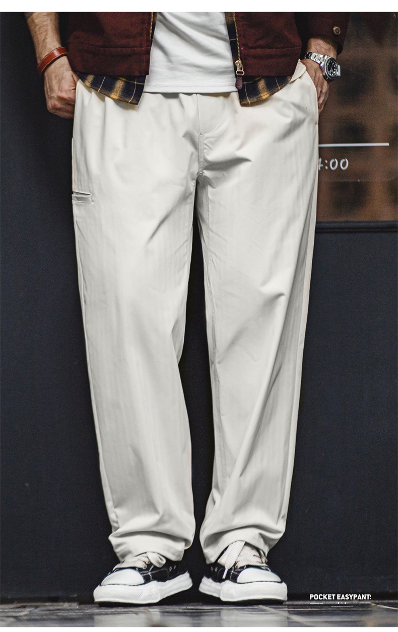 마든 워크웨어 아메리칸 스타일 헤링본 패턴 이지팬츠 캐주얼 팬츠 클린핏 스트레이트 테이퍼드 롱 팬츠 남성용 봄