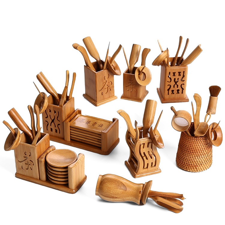 대나무 다도 여섯 신사 전체 세트 쿵푸 차 세트 액세서리 차 예술 조합 티 트레이 장식품 차 클립 솔리드 우드