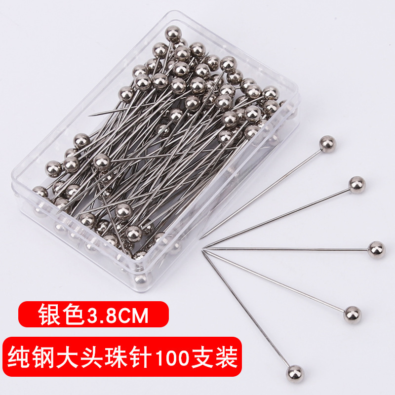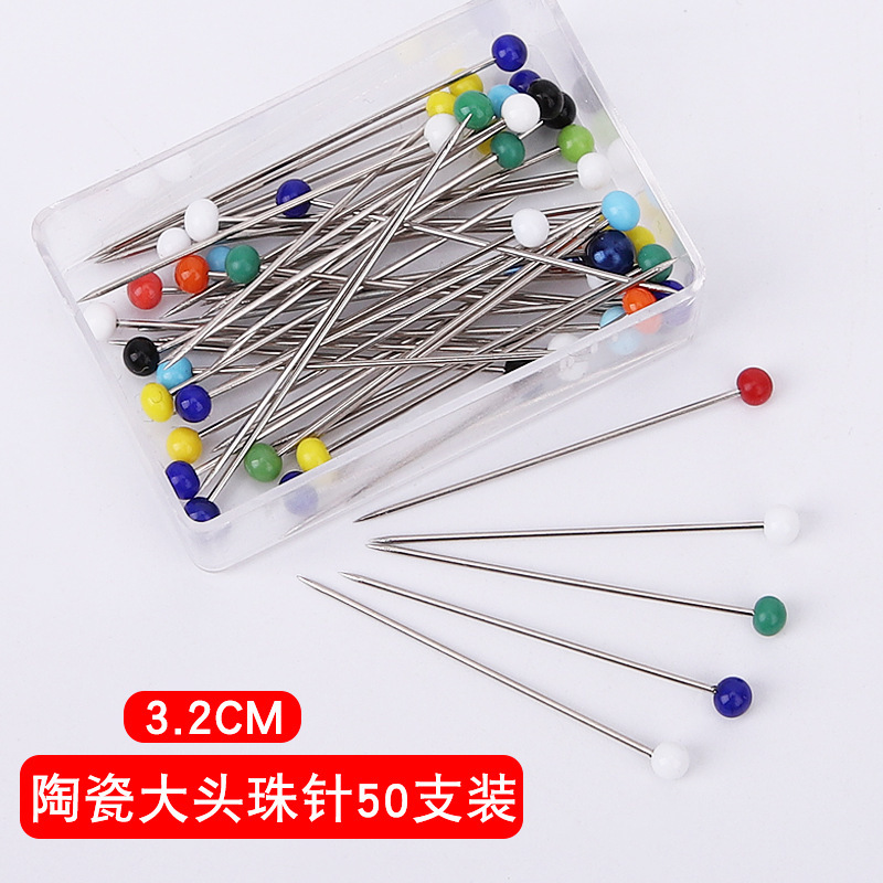스테인레스 스틸 컬러 핀 구슬 위치 바늘 녹 방지 고정 바늘 의류 수직 절단 바늘 진주 바늘 대형 도구