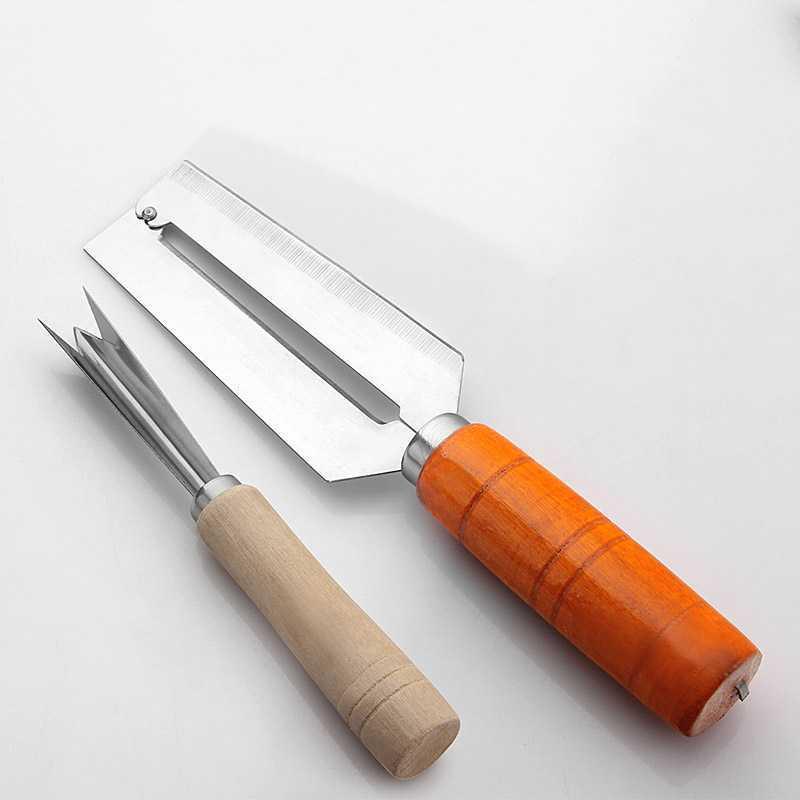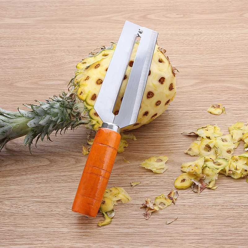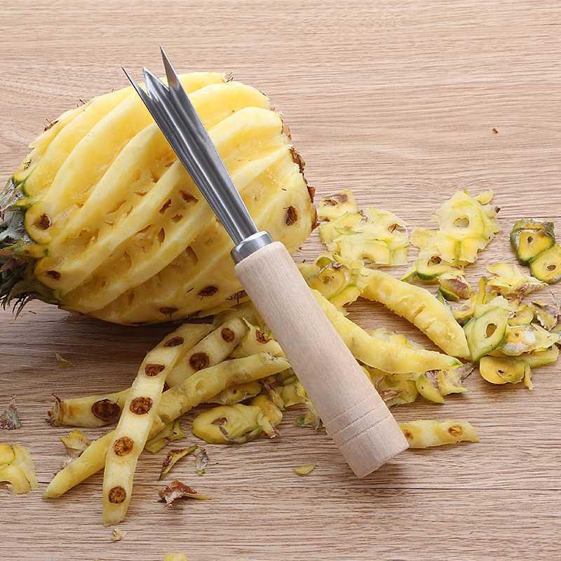 • 나무 손잡이가 달린 파인애플 칼 + 눈 제거 클립 &