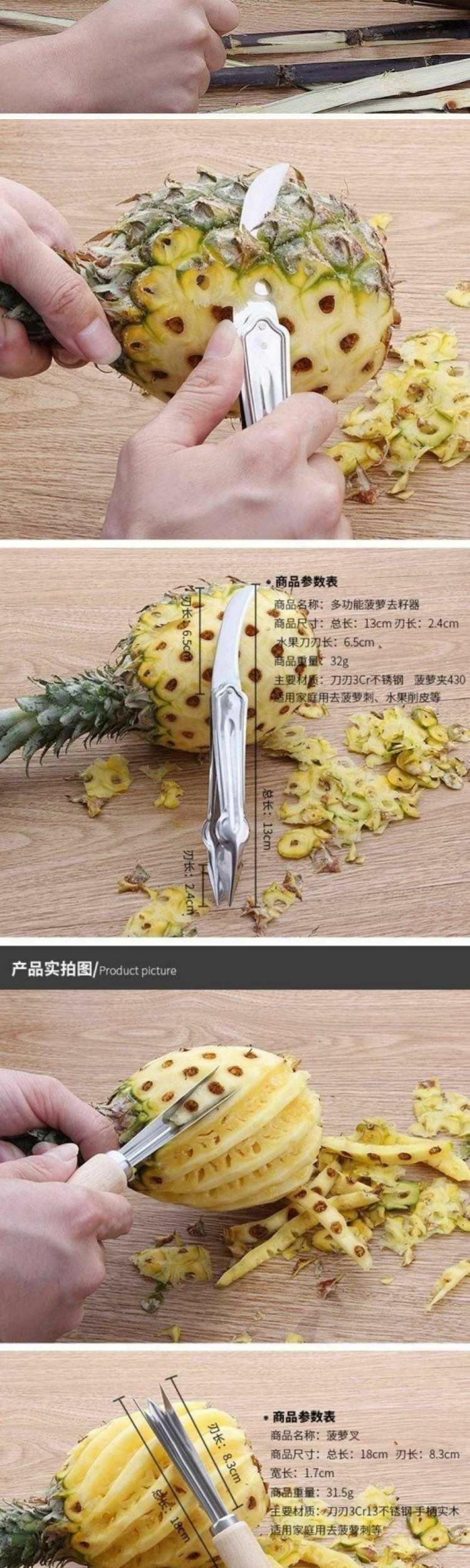 • 나무 손잡이 파인애플 칼 + 나무 손잡이 파인애플 포크 + 눈 제거 클립 &