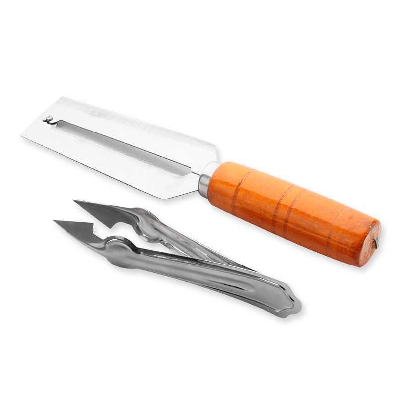 • 탄소강 사탕수수 칼 + 나무 손잡이 파인애플 포크 + 눈 제거 클립 및