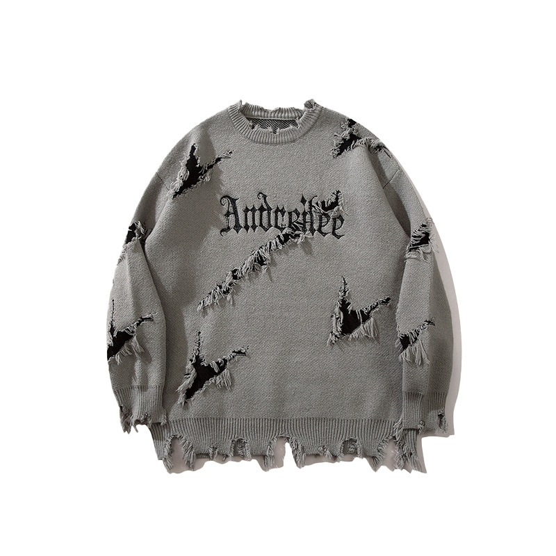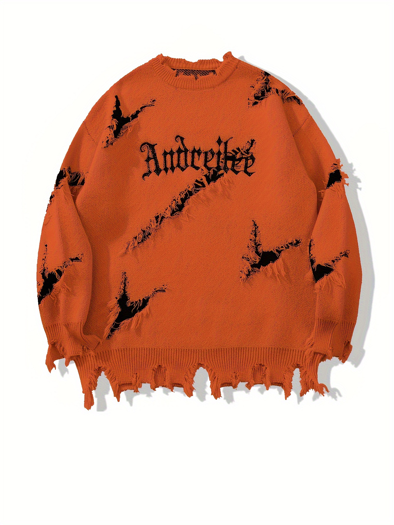 안드레 | 남성용 레트로 레터링 프린트 데미지 가공 가을 겨울 루즈핏 커플용 라운드넥 긴팔 니트 스웨터스토어 가기