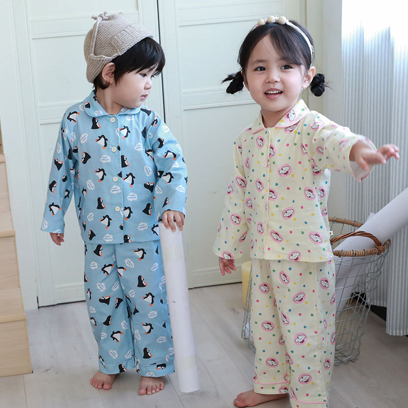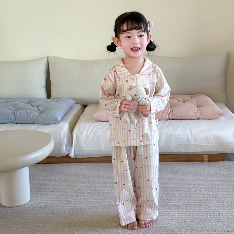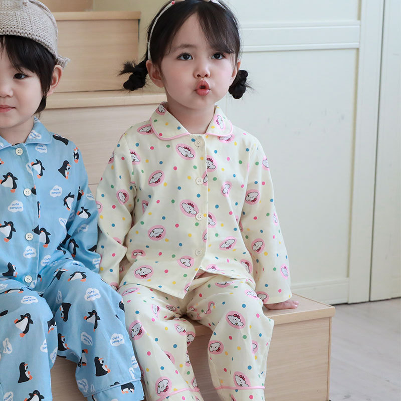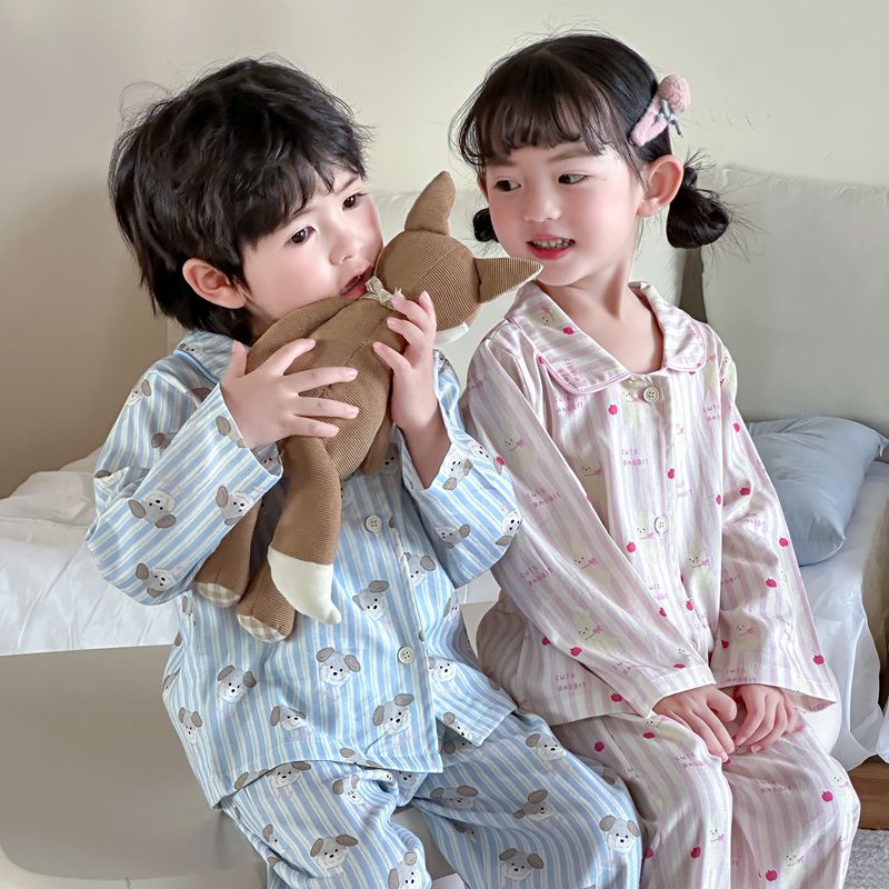 어린이 집 옷 봄 가을면 겉옷 카디건 세트 느슨한 따뜻한 소년들과 소녀들의 귀여운 잠옷 한국어