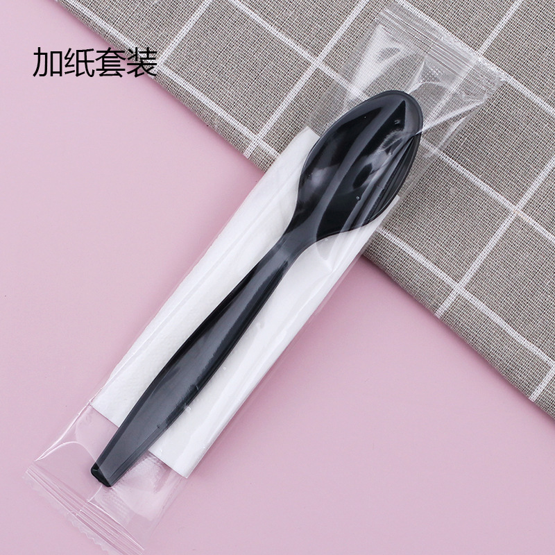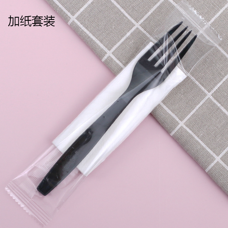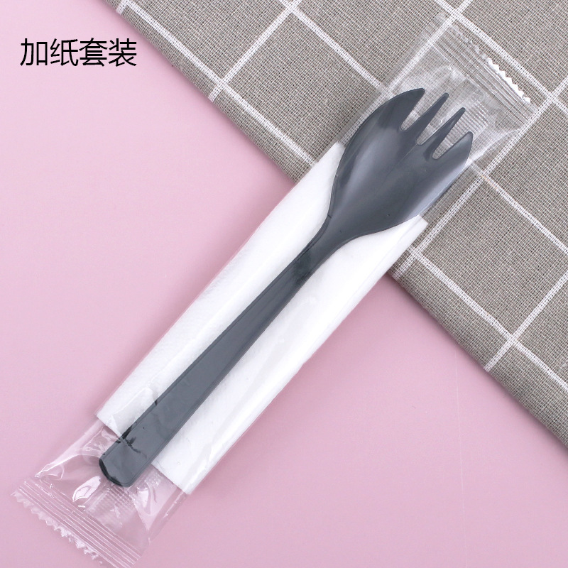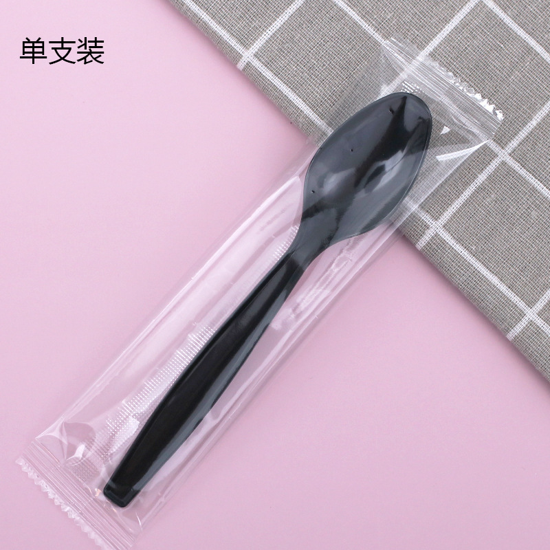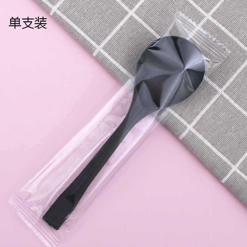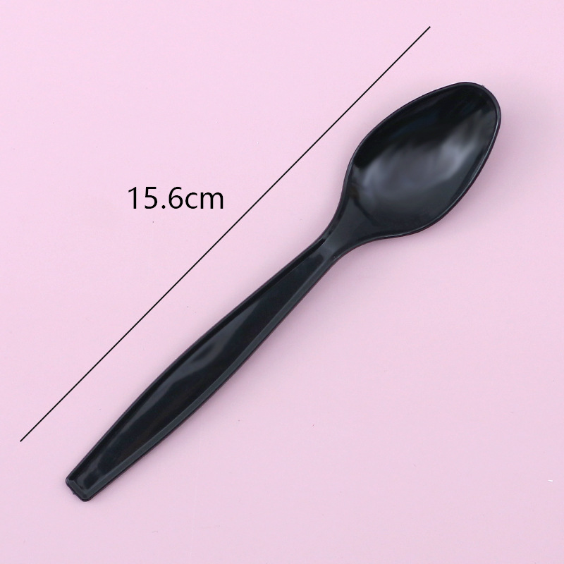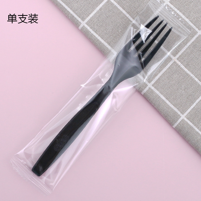 일회용 플라스틱 포크 스푼 과일 포크 싱글 팩 블랙 두꺼운 16cm 긴 손잡이 테이크 아웃 라이스 스푼 포크 원