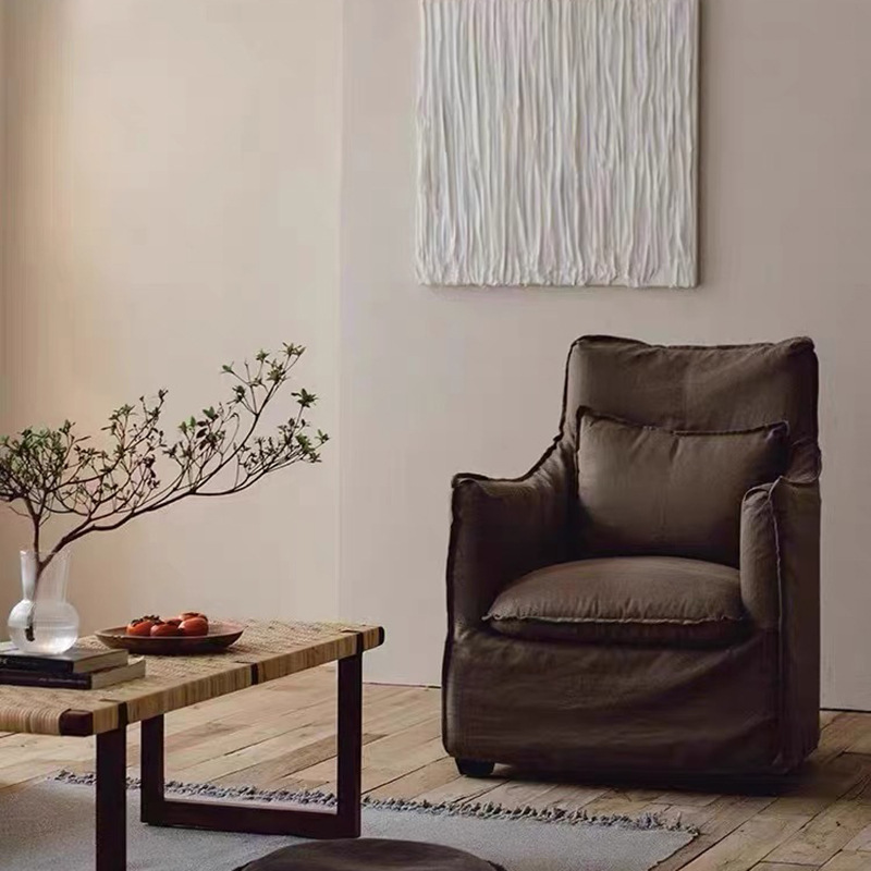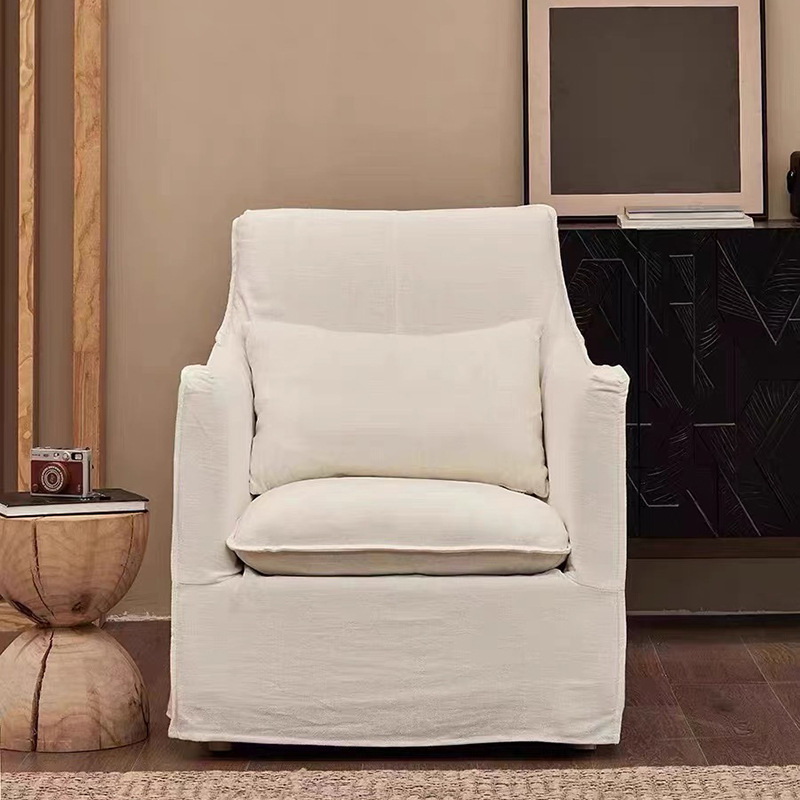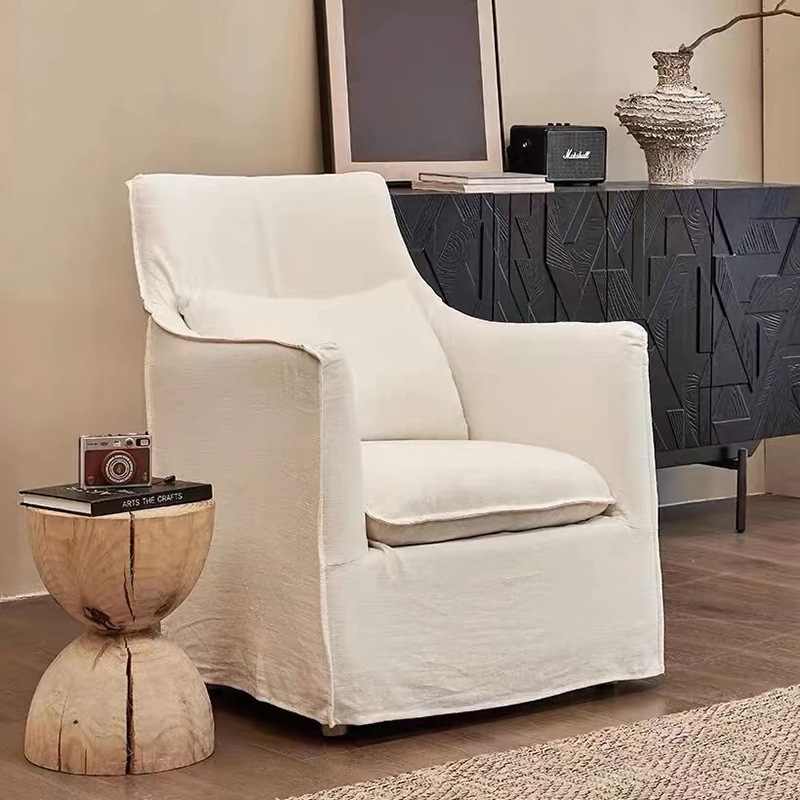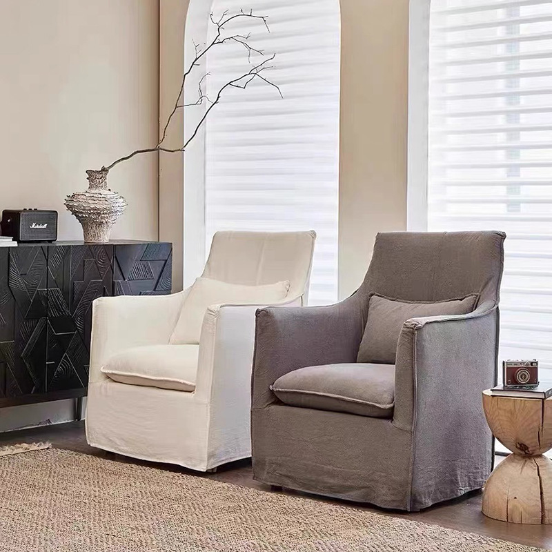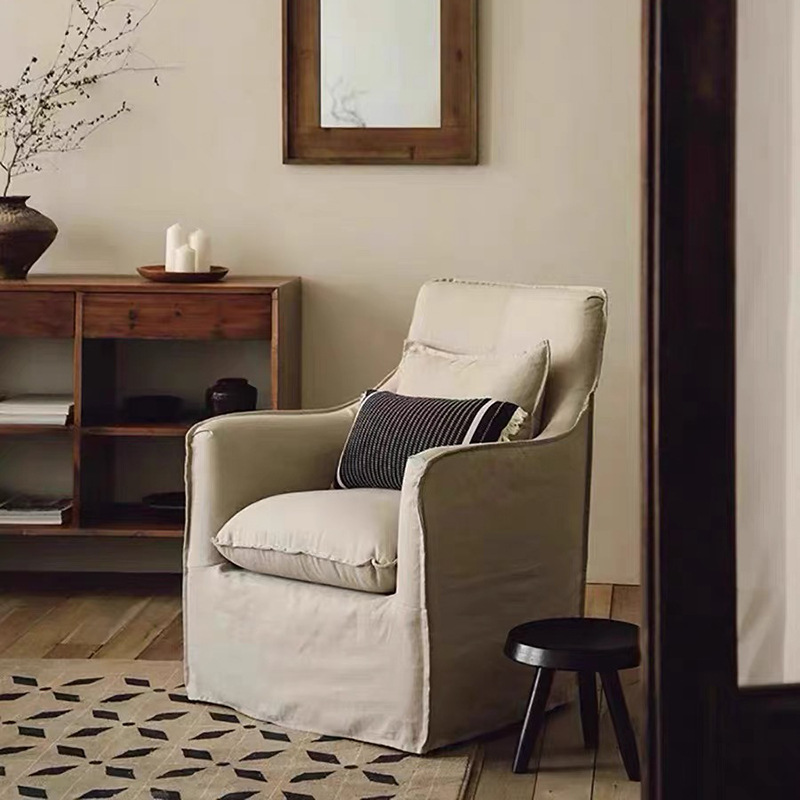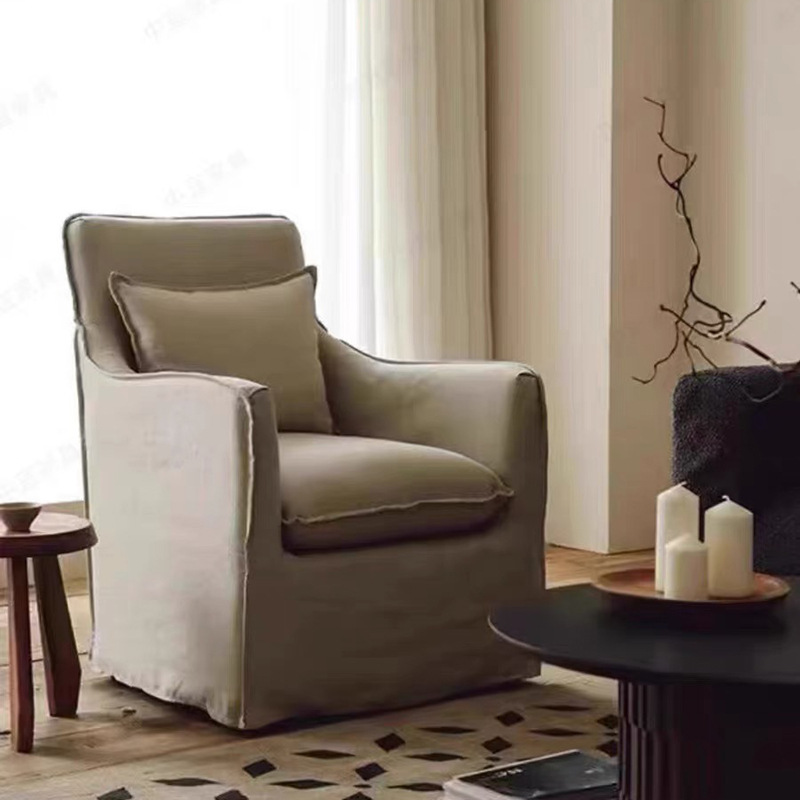 일본식 프랑스 스타일 레저 의자 거실 작은 아파트 단일 분리식 세탁 가능한 린넨 아트 소파 노르딕 홈스테이